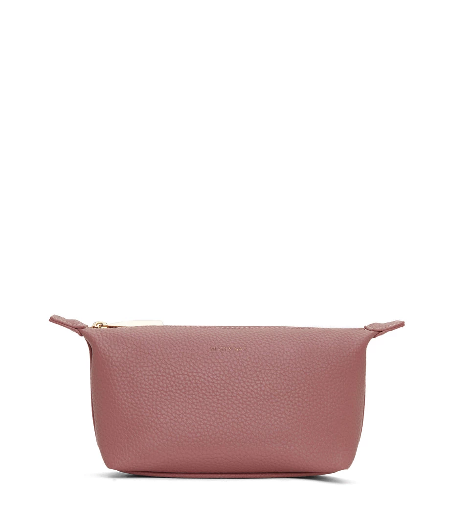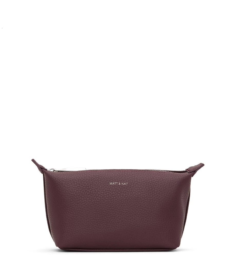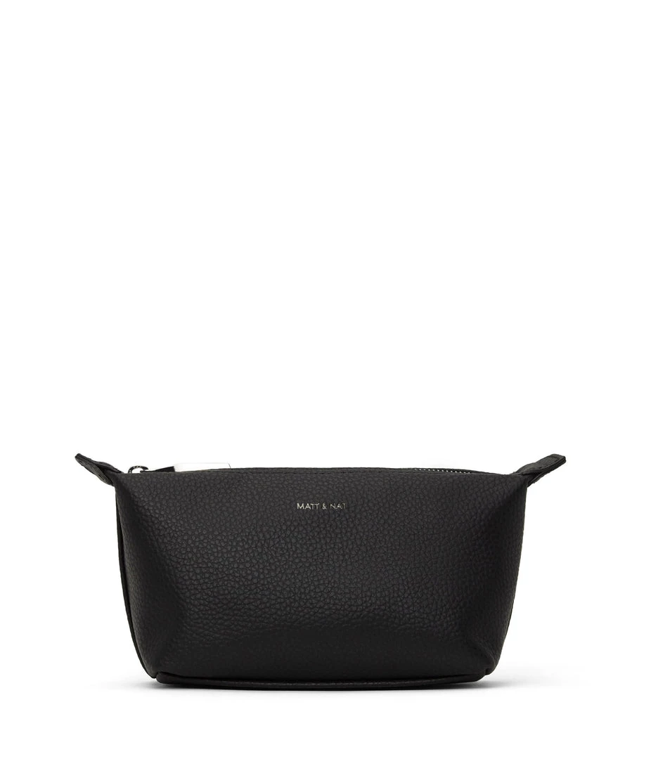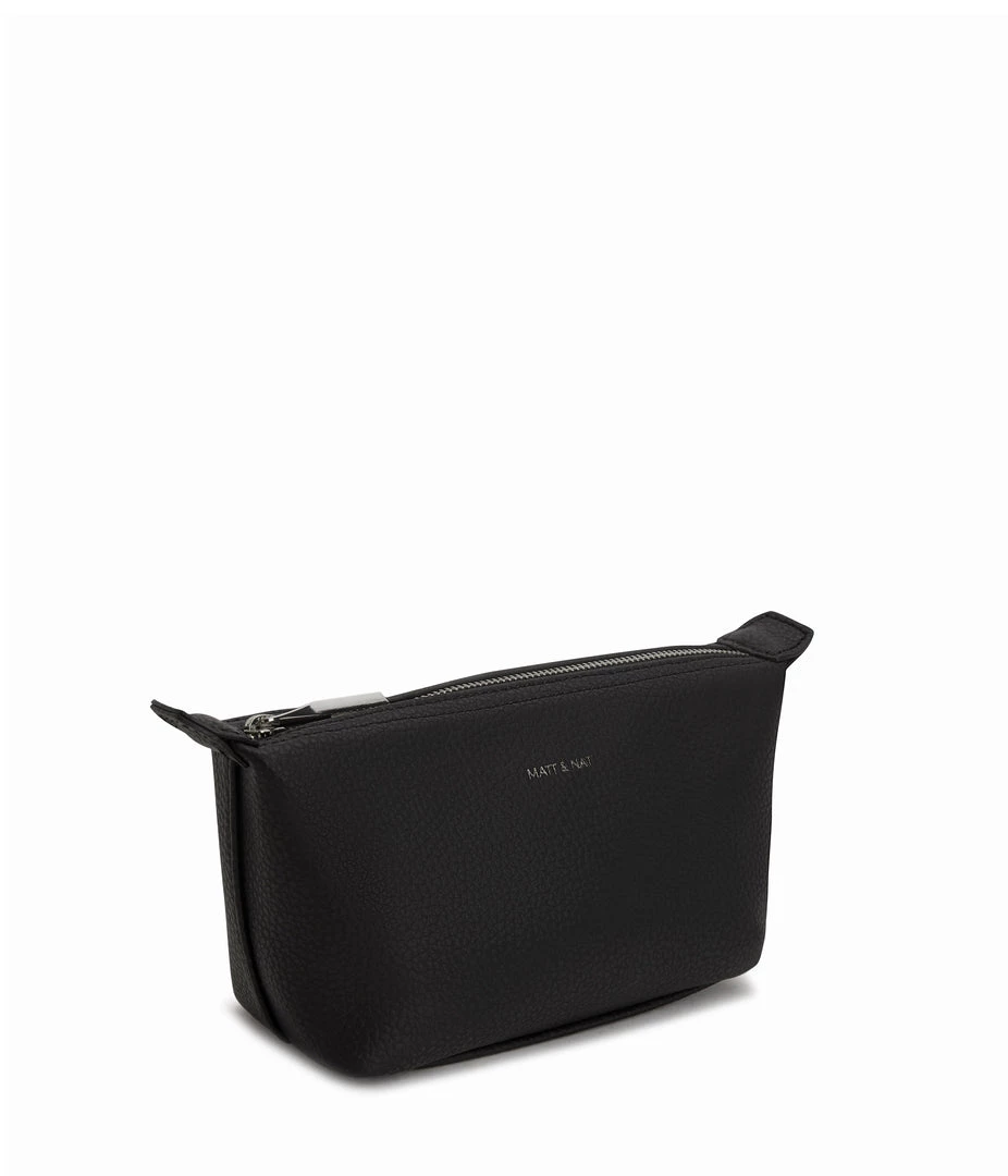 Cosmetic bag with top metal zip closure and tab detail at the zipper end.