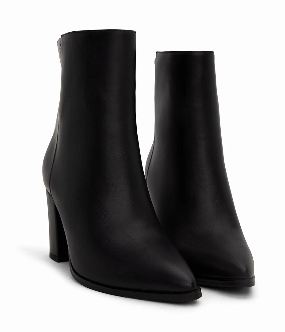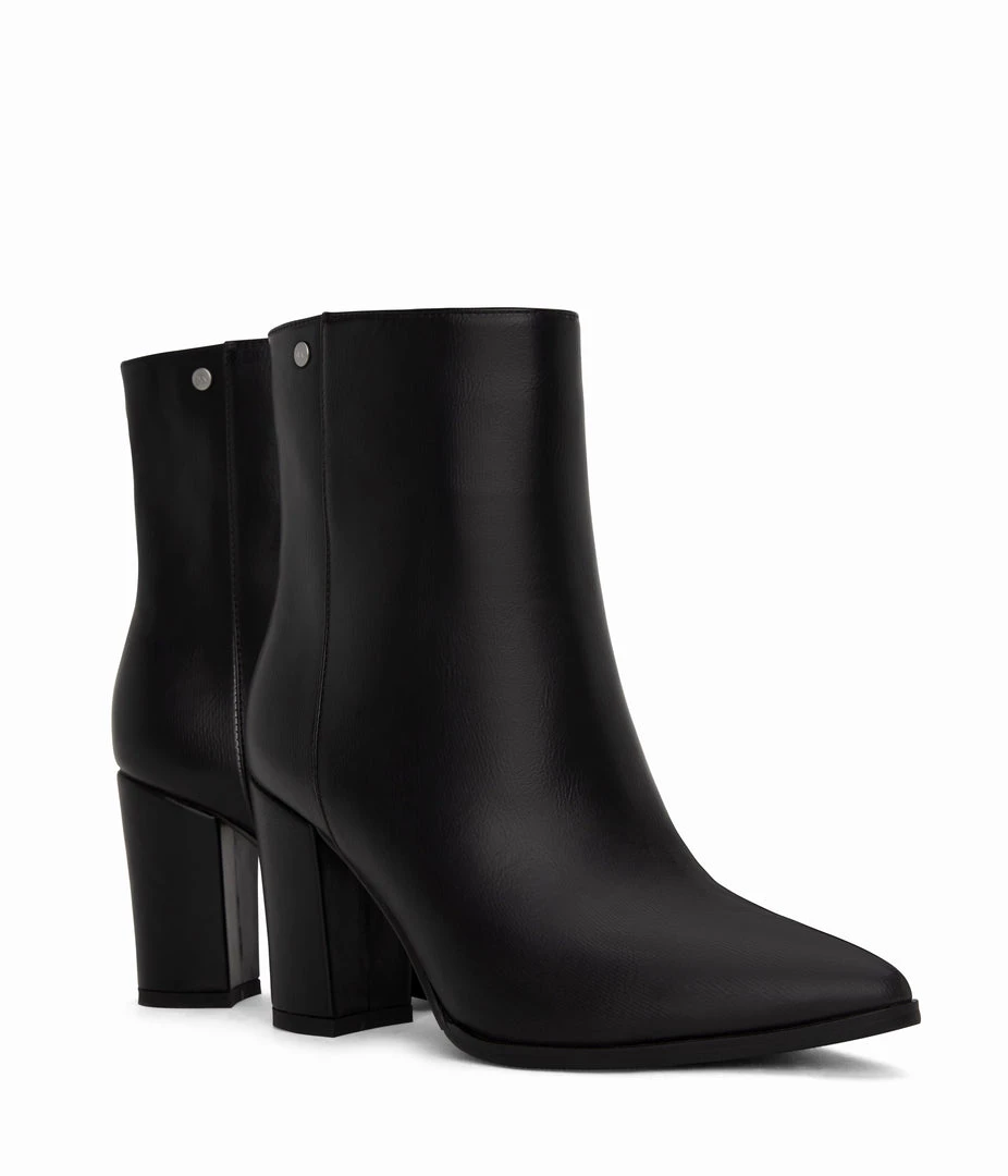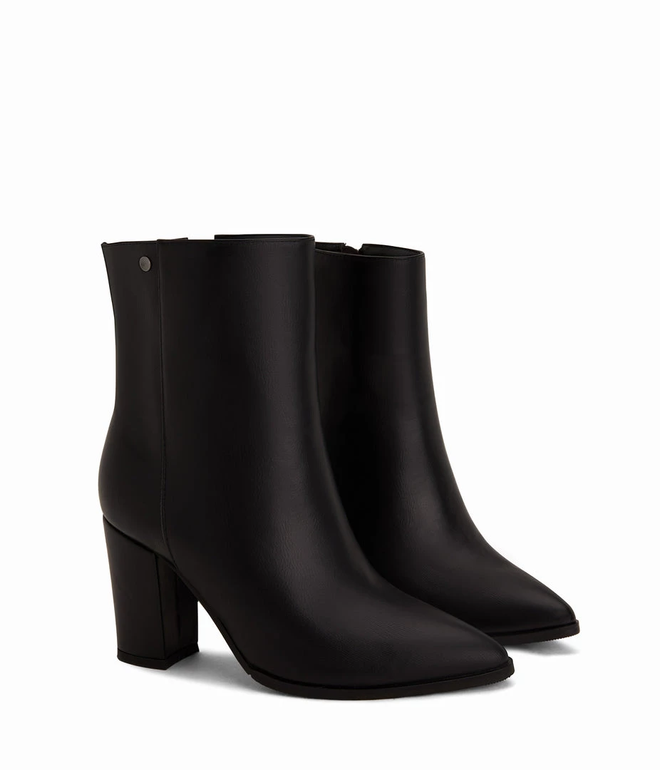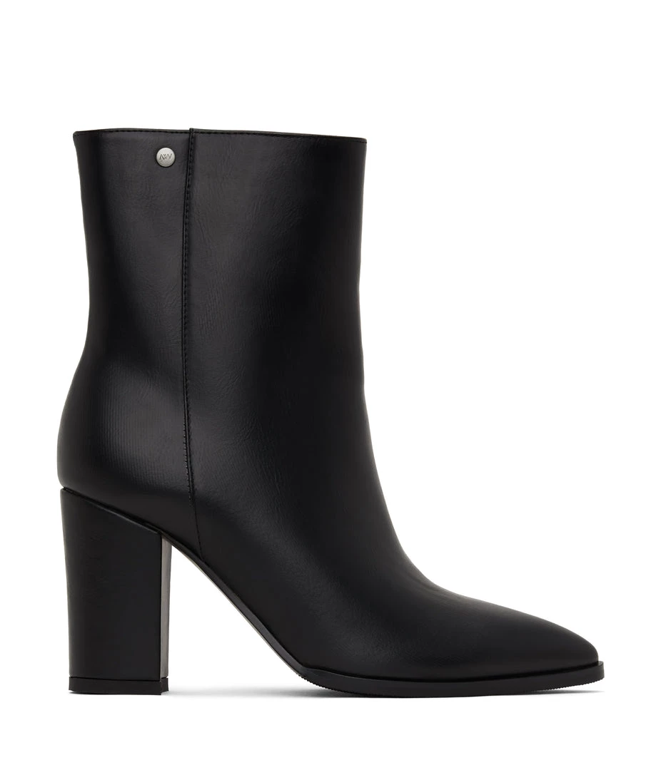 Women’s high heel block heel with block heel and pointed toe. MN logo rivet detail.