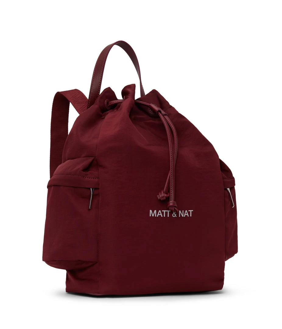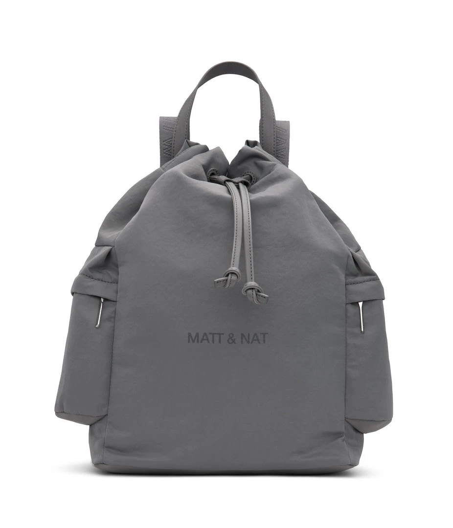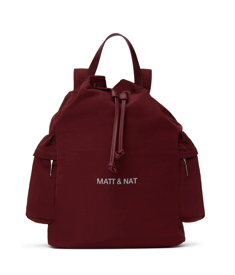 Diaper drawstring bag that can be worn as a backpack, on the shoulder using a shoulder strap, or handheld using the top handle. Back exterior slip pocket. functional zipper compartments on both sides for storing baby bottles, water bottles and other necessities.