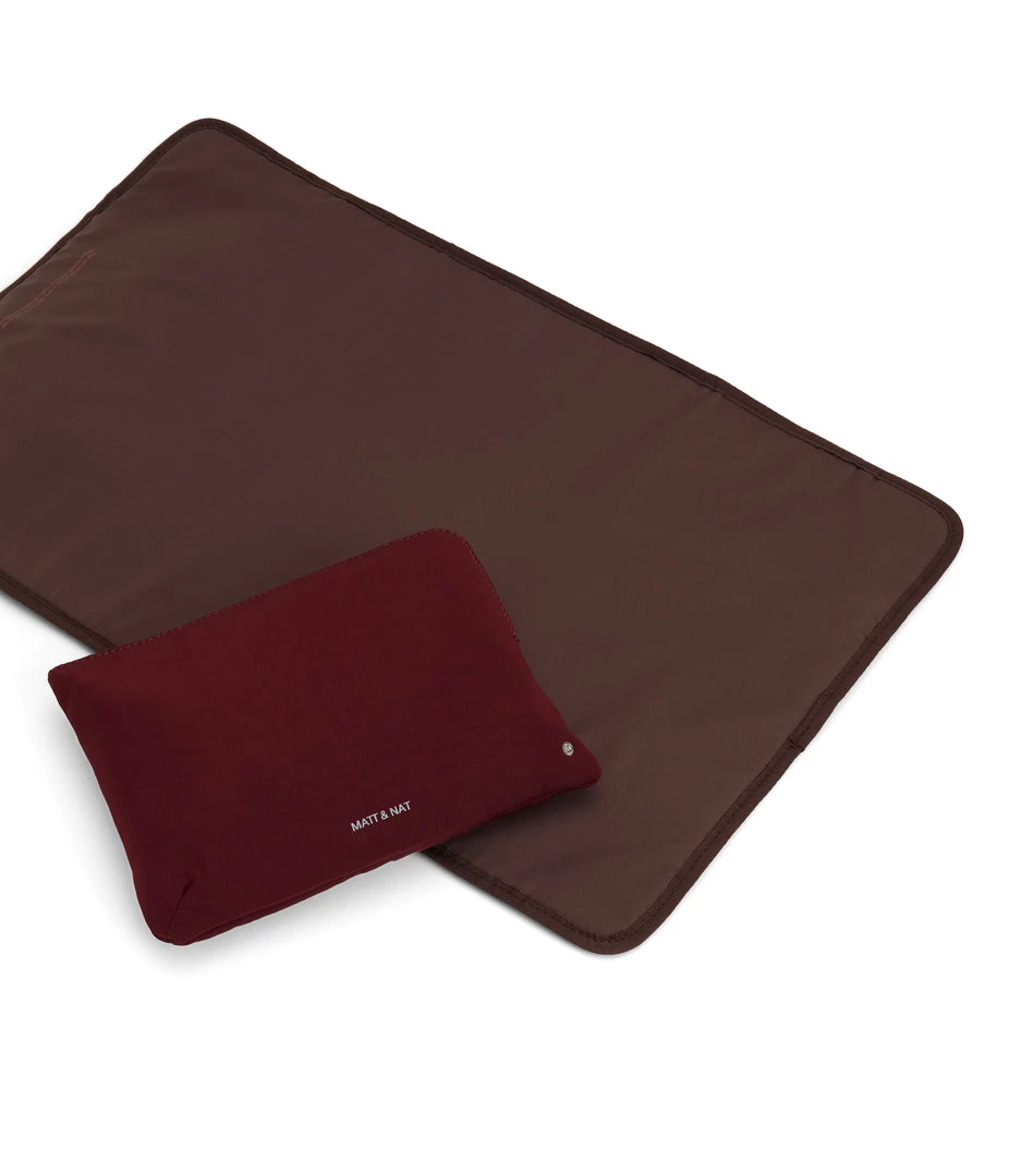 - Interior: Features a removable pouch on a string that has a folded baby changing pad inside for easy access. Elastic pockets on each of the interior to store diapers, baby clothes, etc. Zipper pocket, logo-embossed Vintage patch.