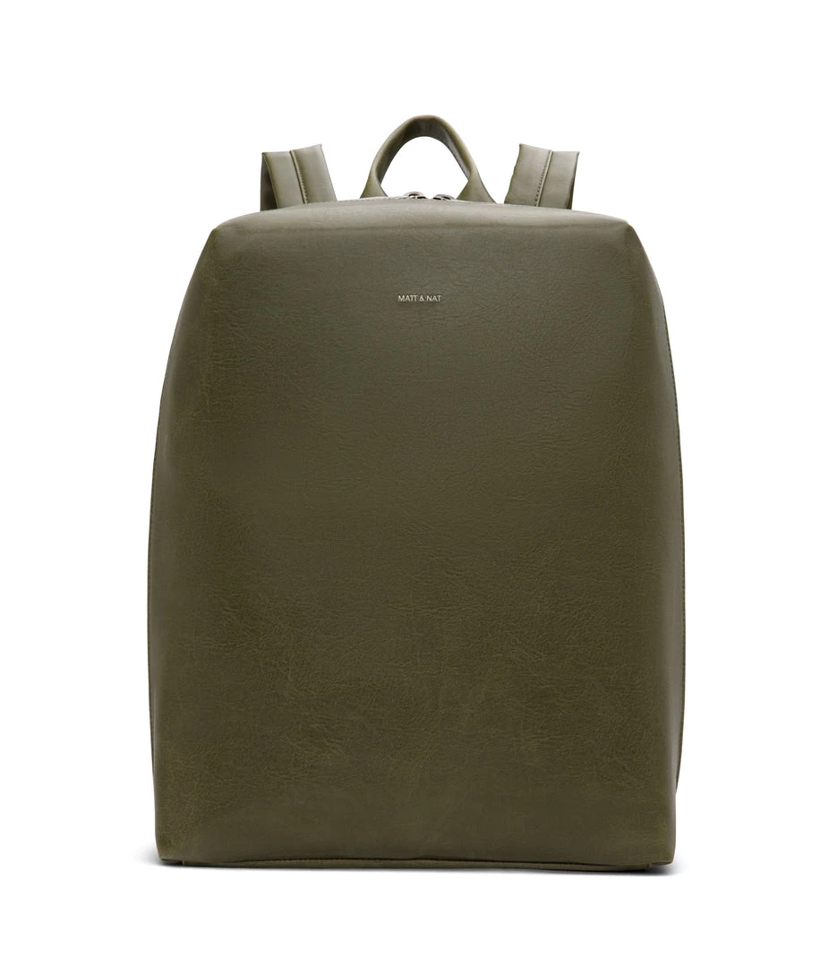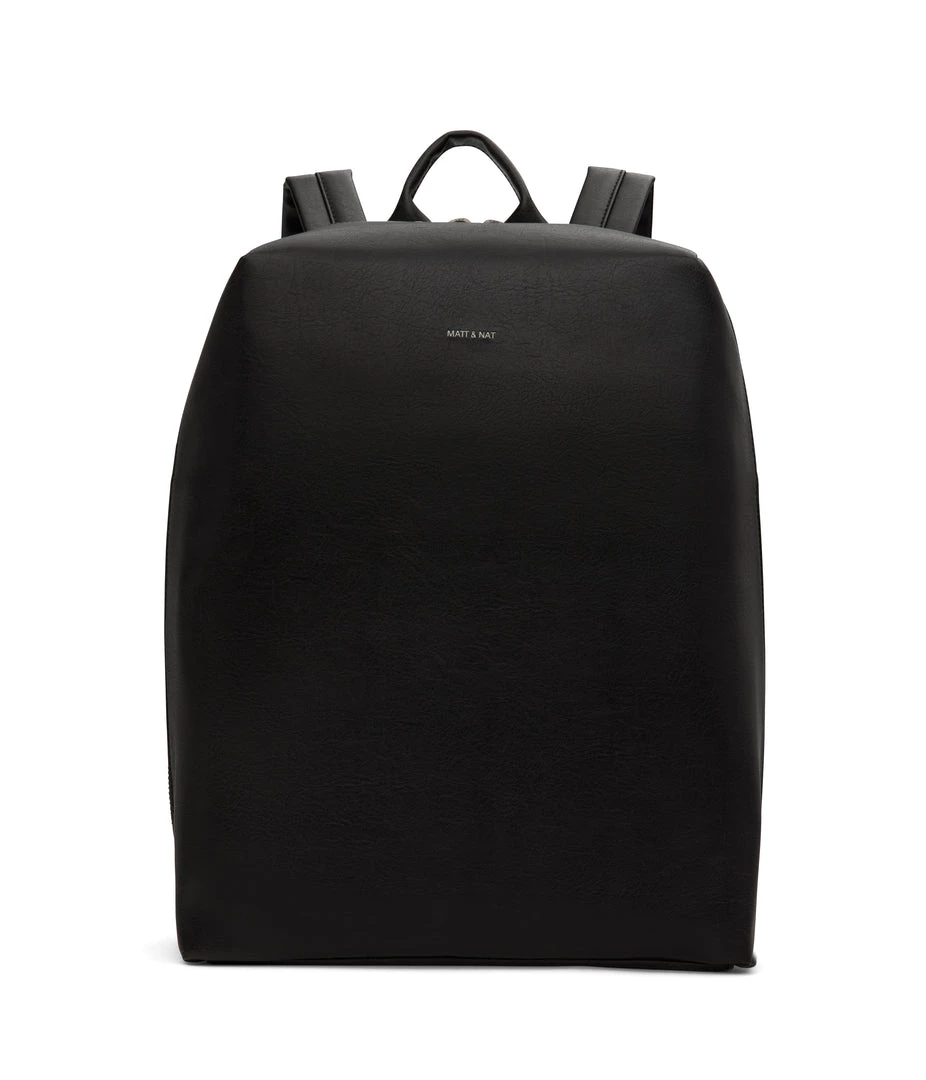 Backpack with two-way metal zip closure that extends to bottom gusset. Top handle. Padded adjustable shoulder straps. Metal zip pocket on exterior back.