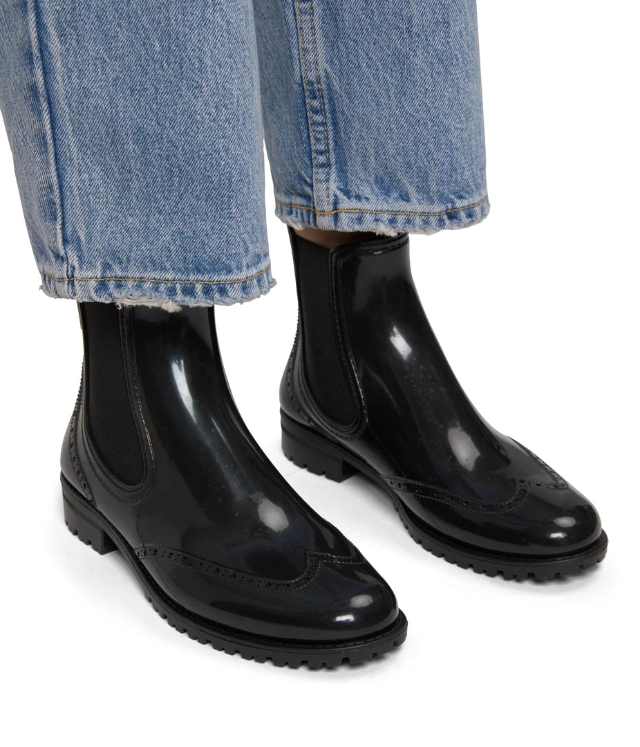Waterproof bootie with elastic gore and perforated toe cap detail.