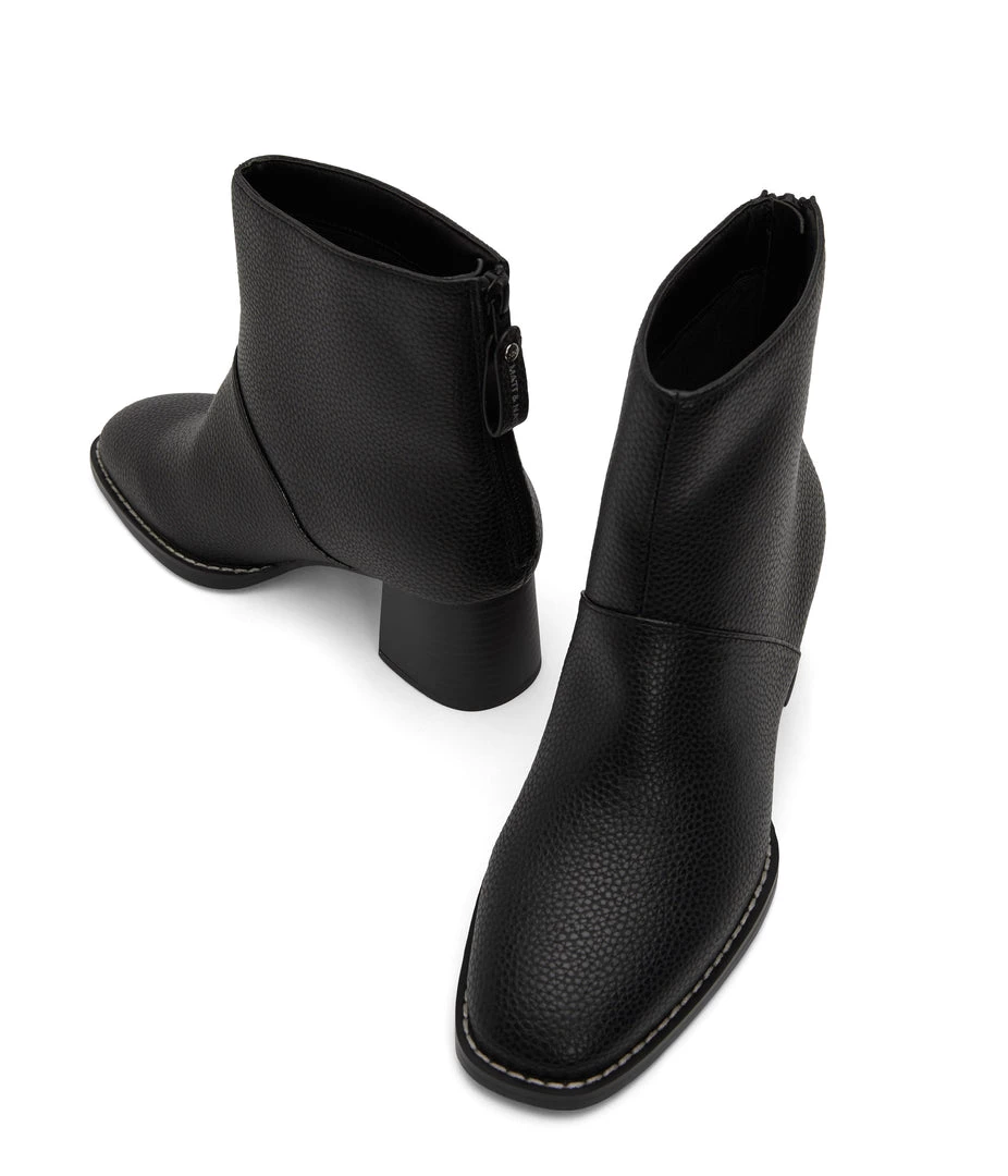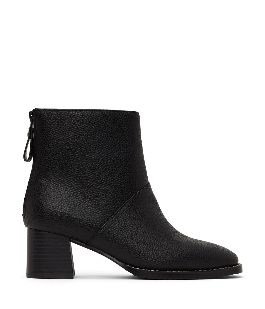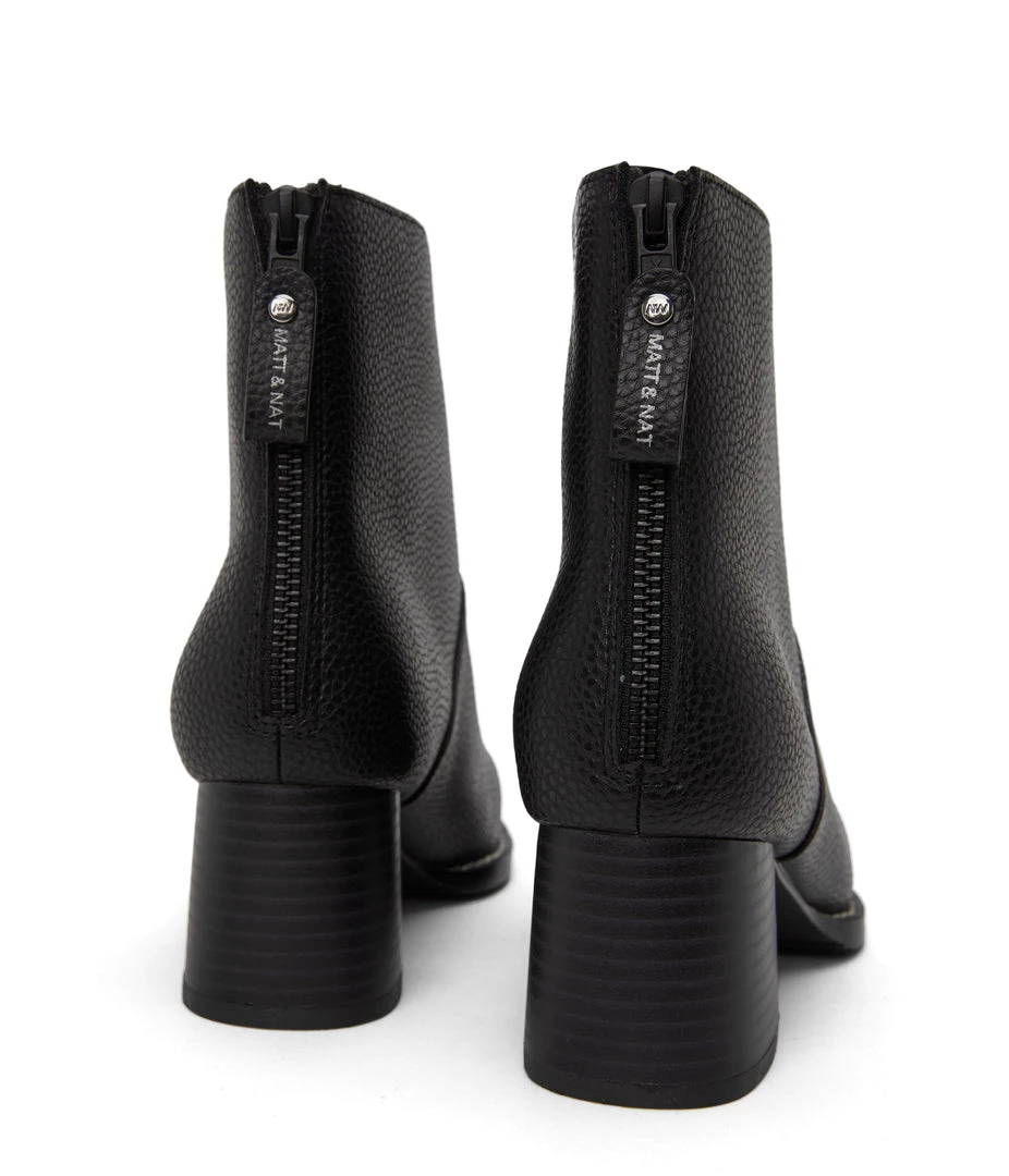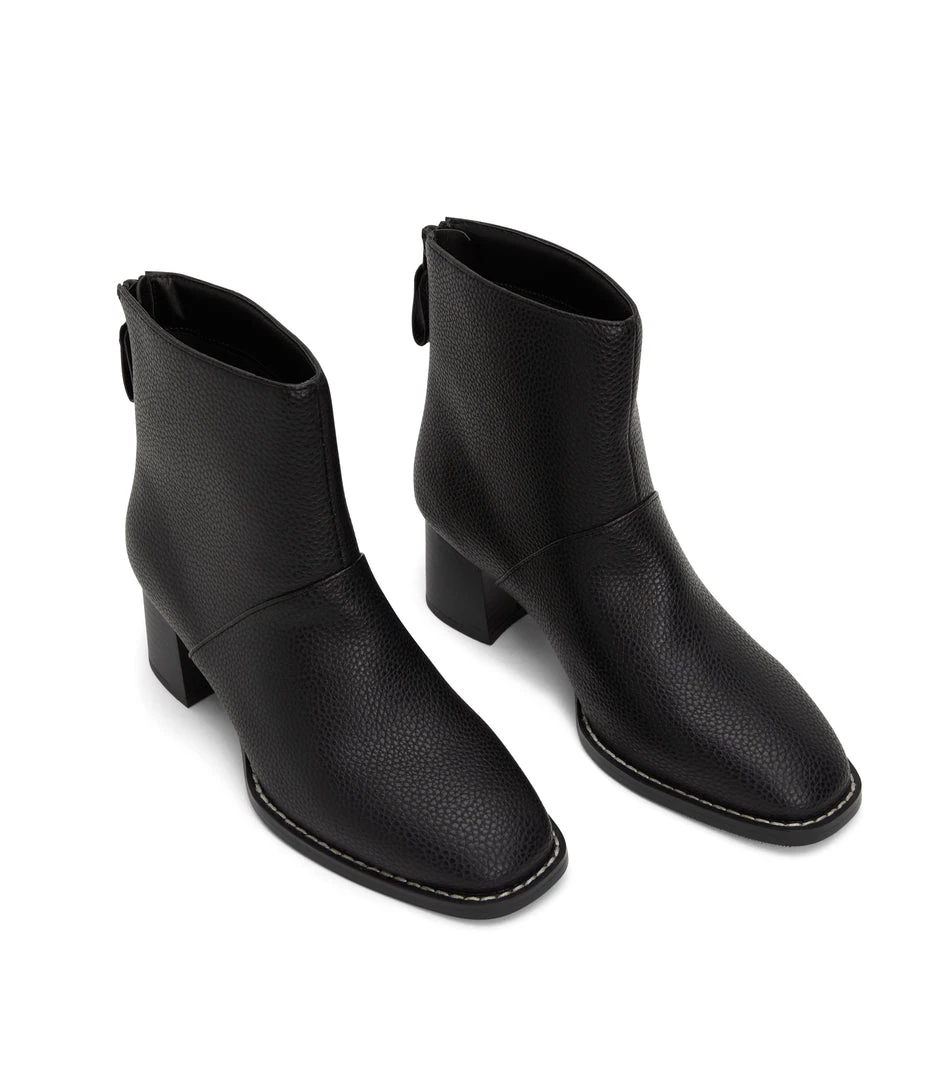 Women’s block heel with outsole topstitching trim detail and YKK back counter zipper with MATT & NAT logo tab.