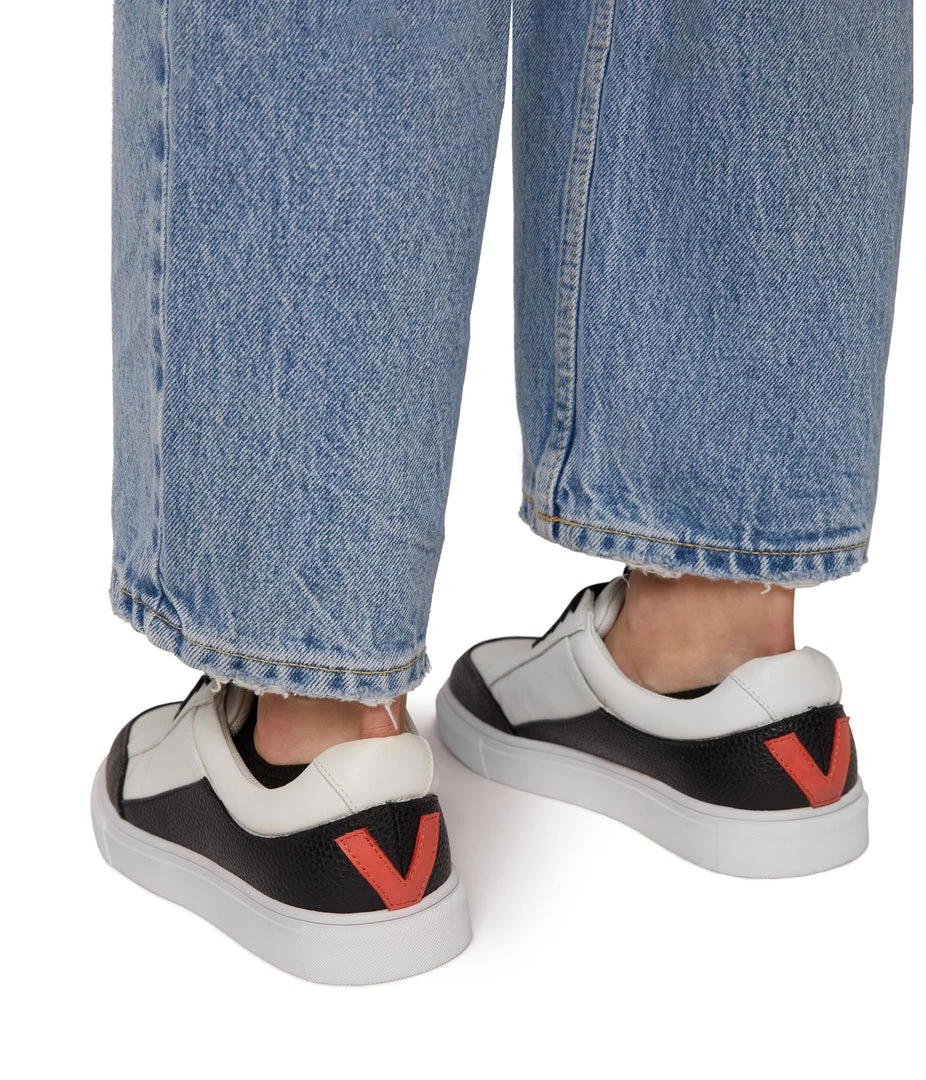 Women’s skater style sneaker with comfort outsole. and V detail logo at the back counter.