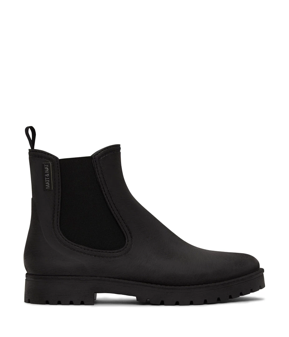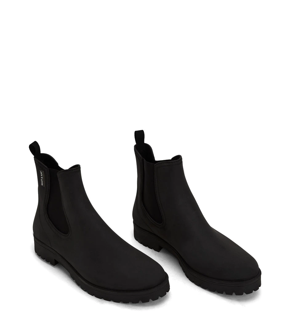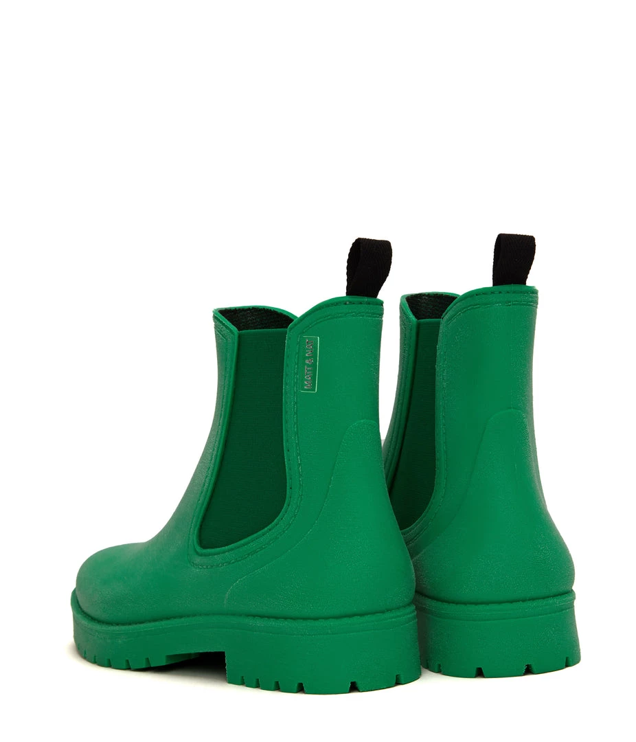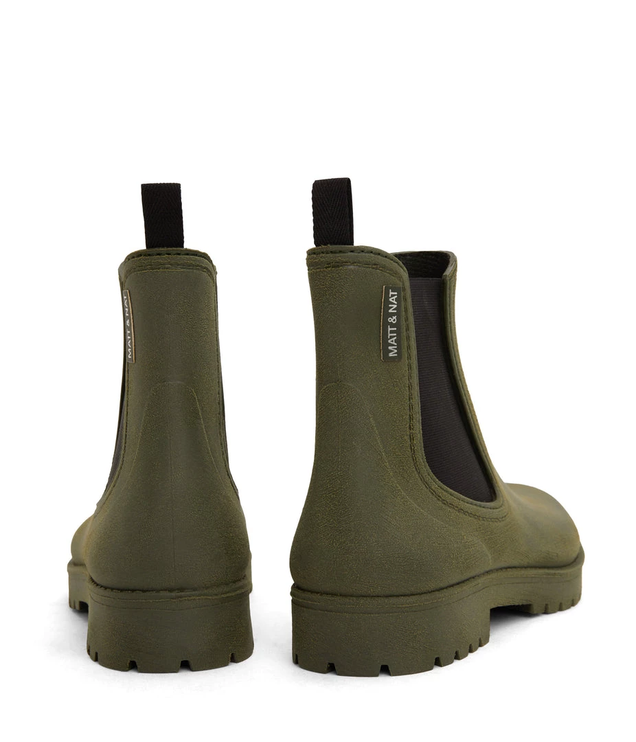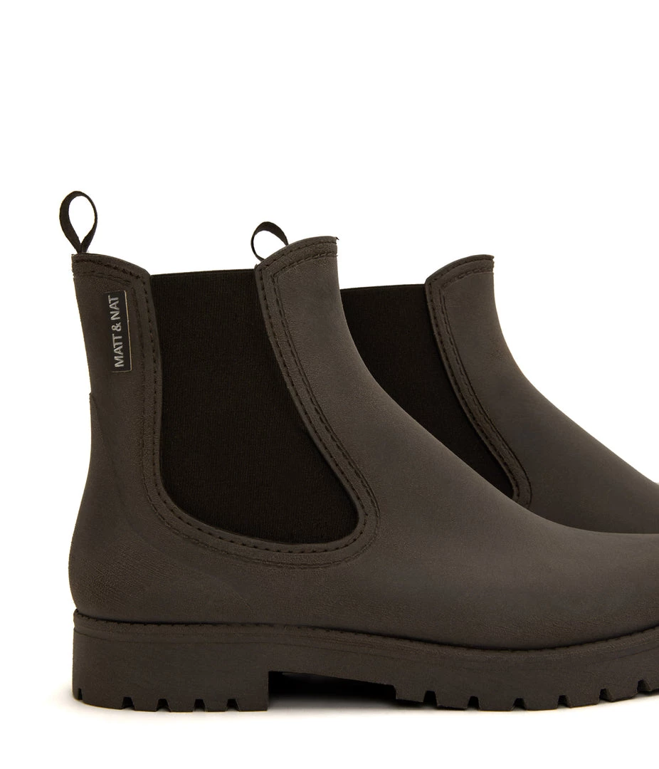 Women’s waterproof brushed rainboot with a contrast outsole and MATT & NAT logo detail.