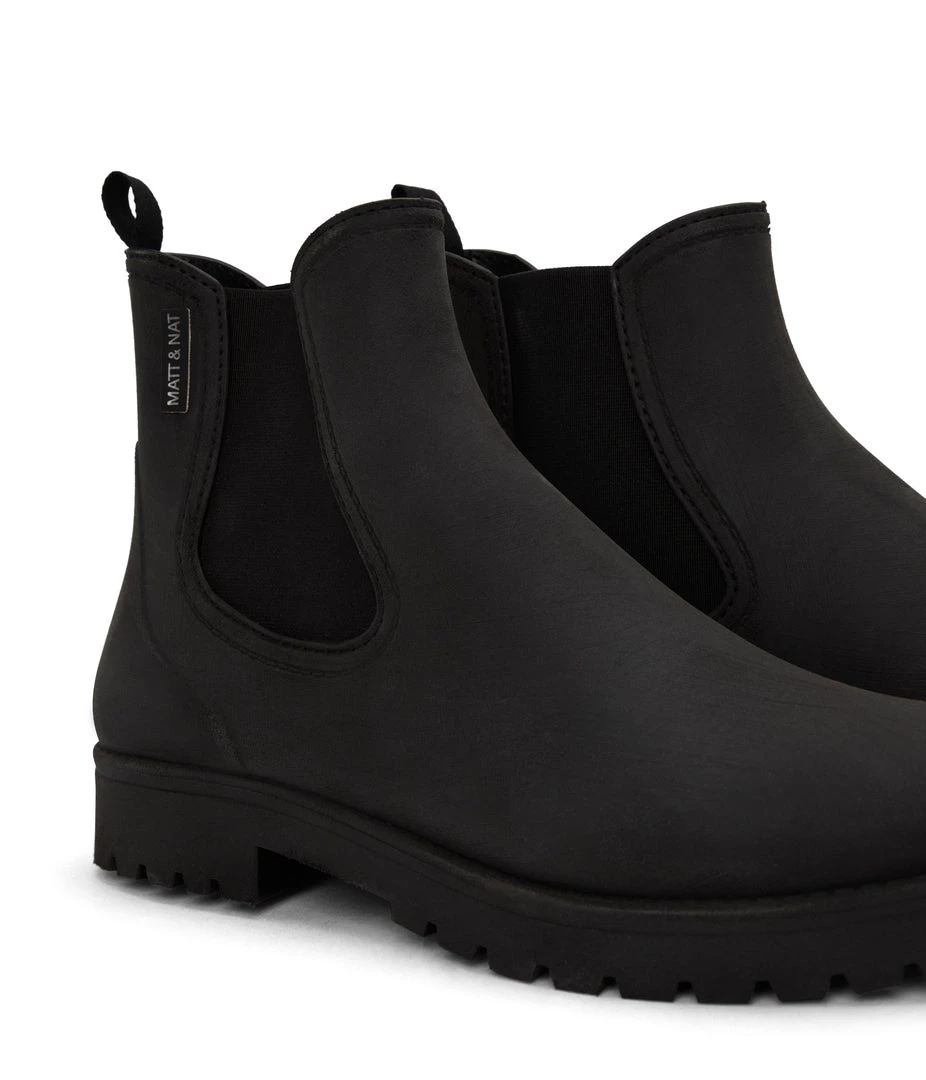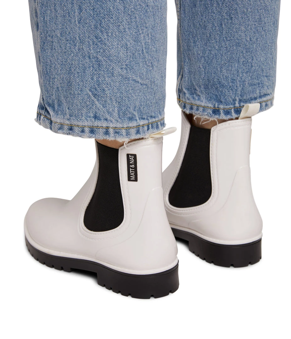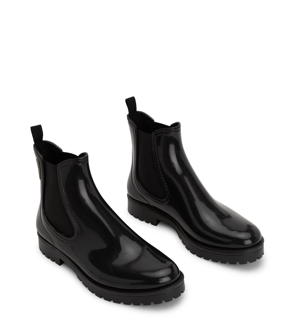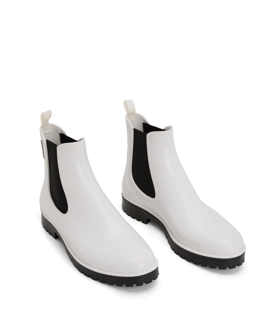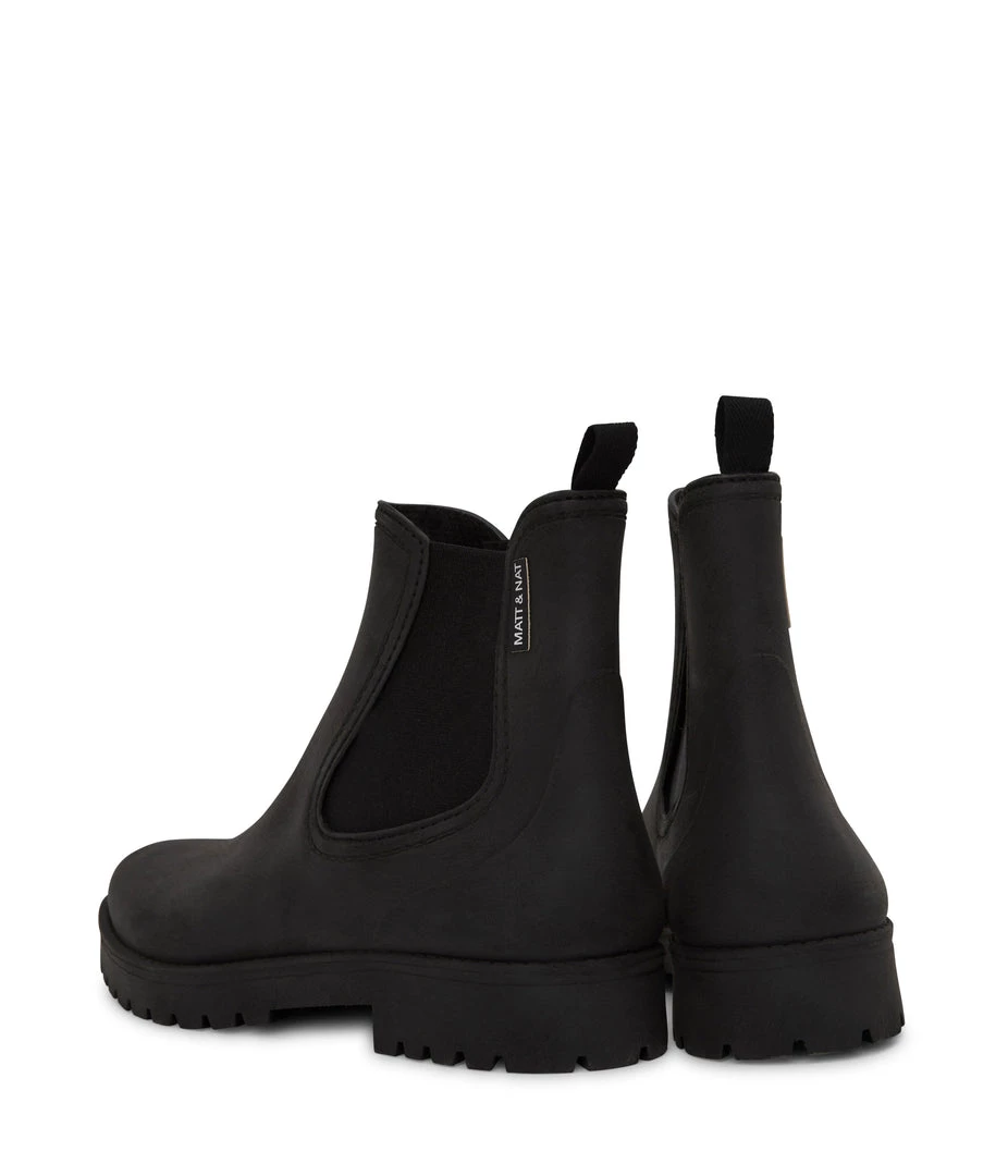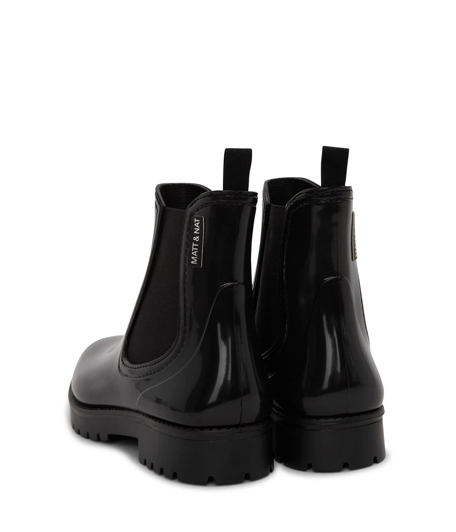 Women’s waterproof brushed rainboot with a contrast outsole and MATT & NAT logo detail.
