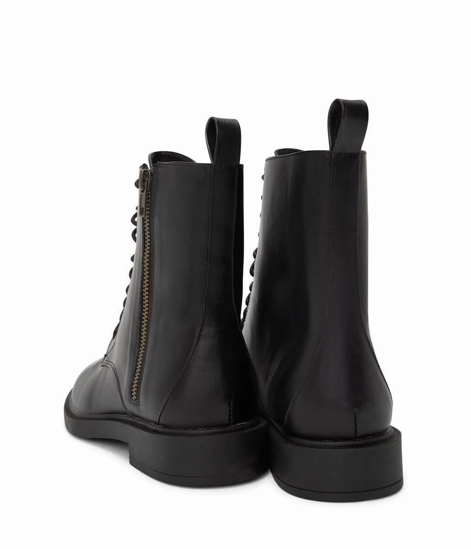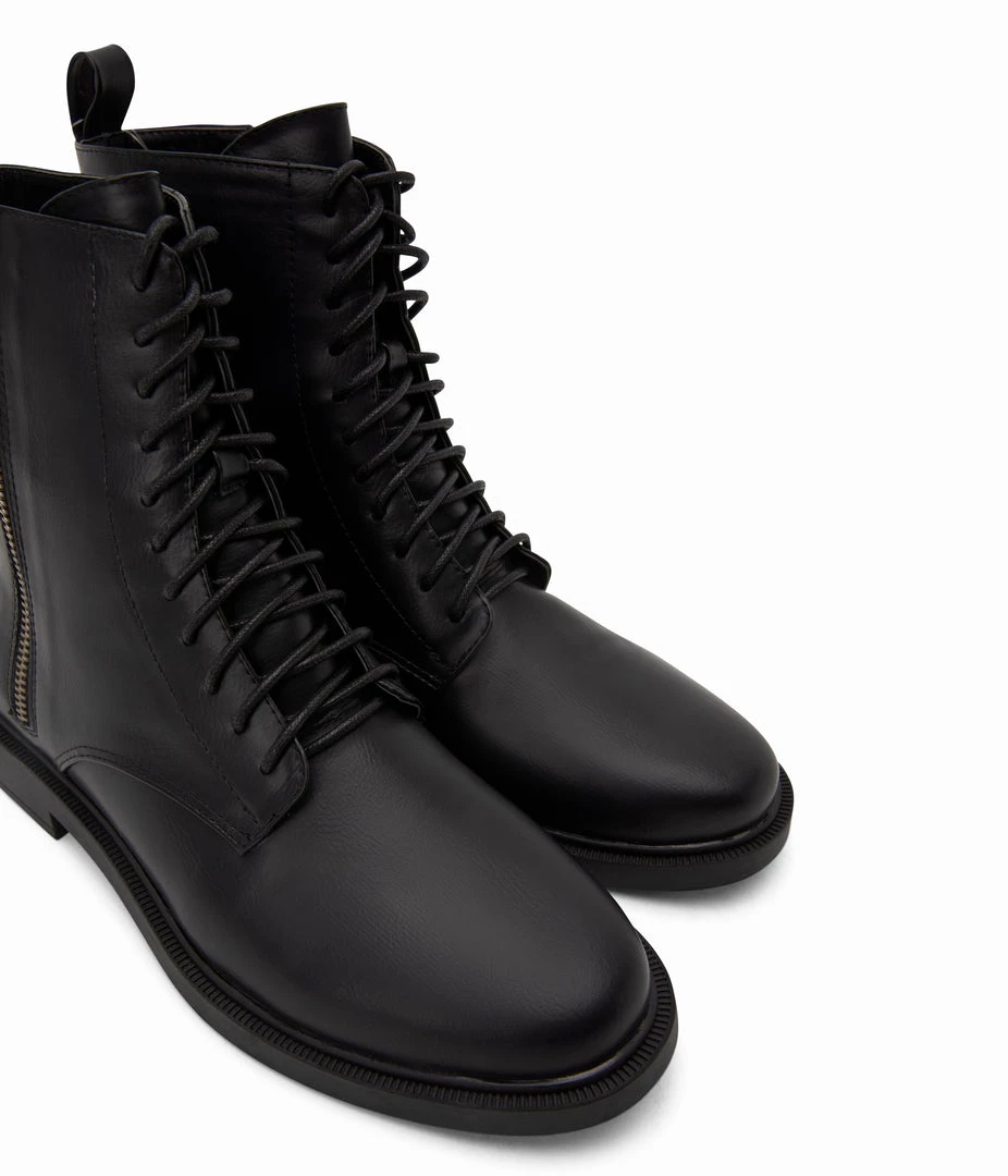 Women’s combat bootie with lace-up and YKK zipper opening.
