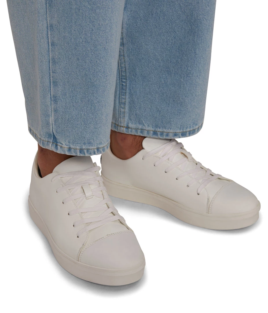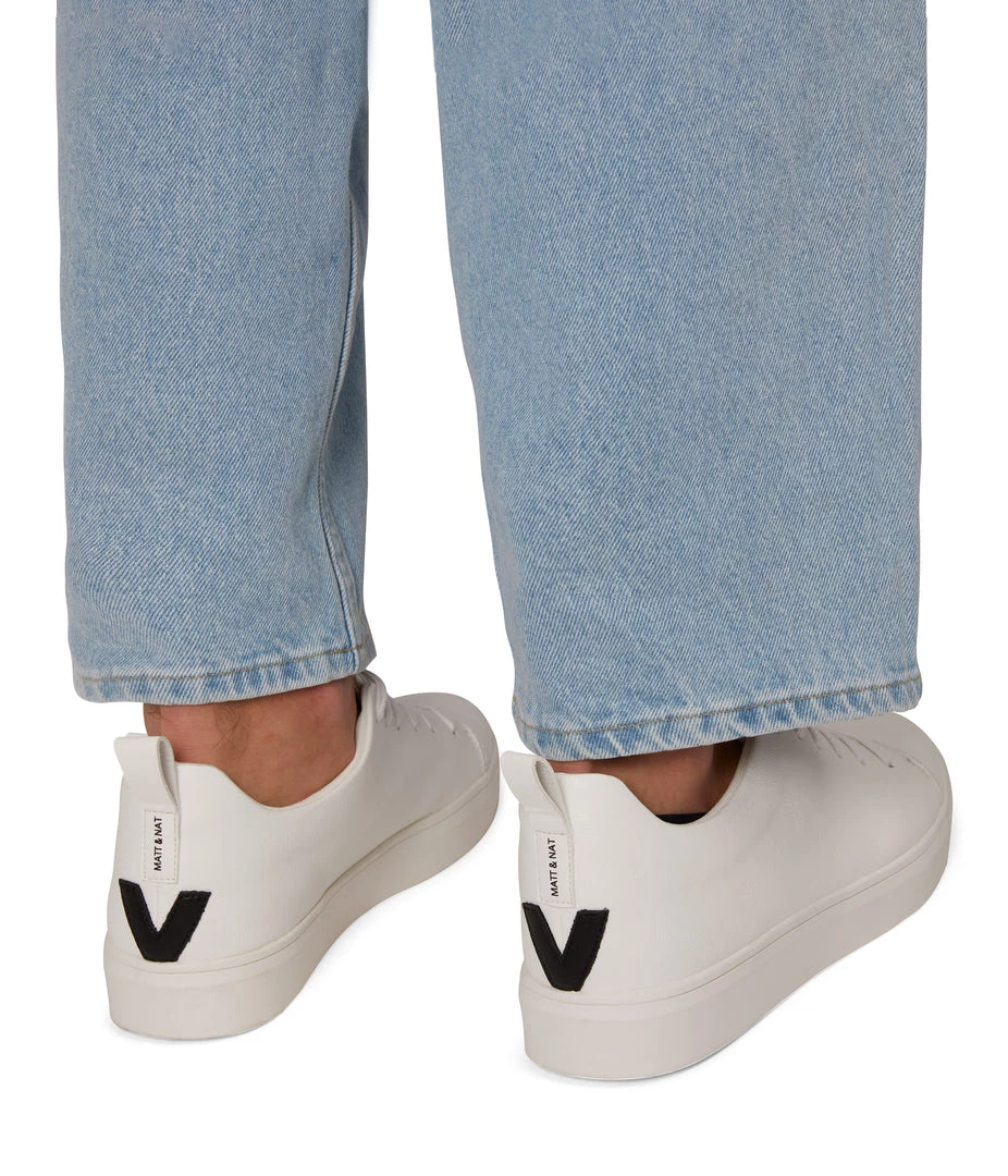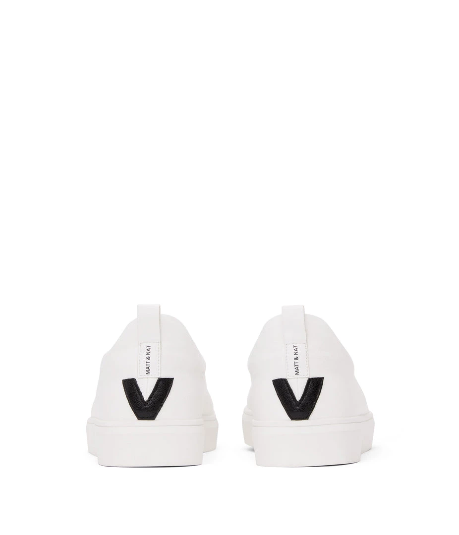 Men’s modern sneaker with simple upper and V logo detail at the back counter.