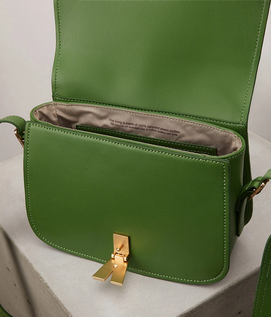 All of the interior linings of our bags are made from 100% recycled water bottles.