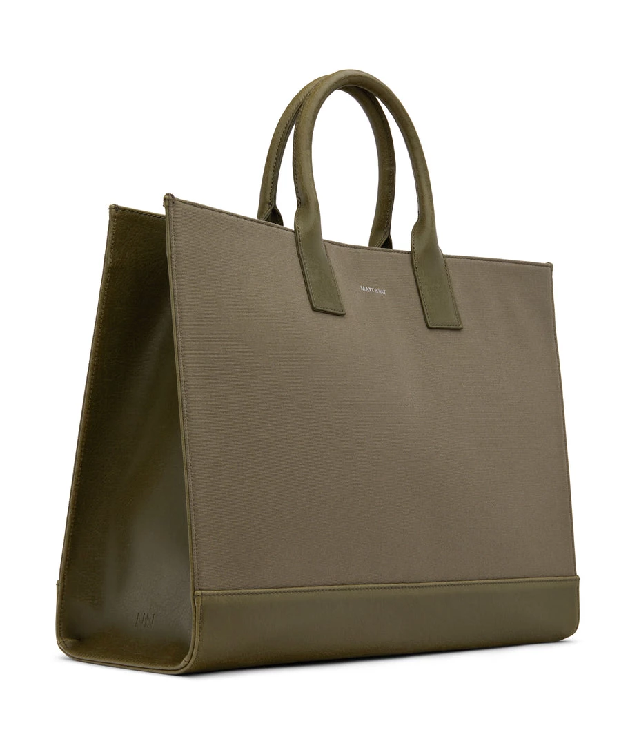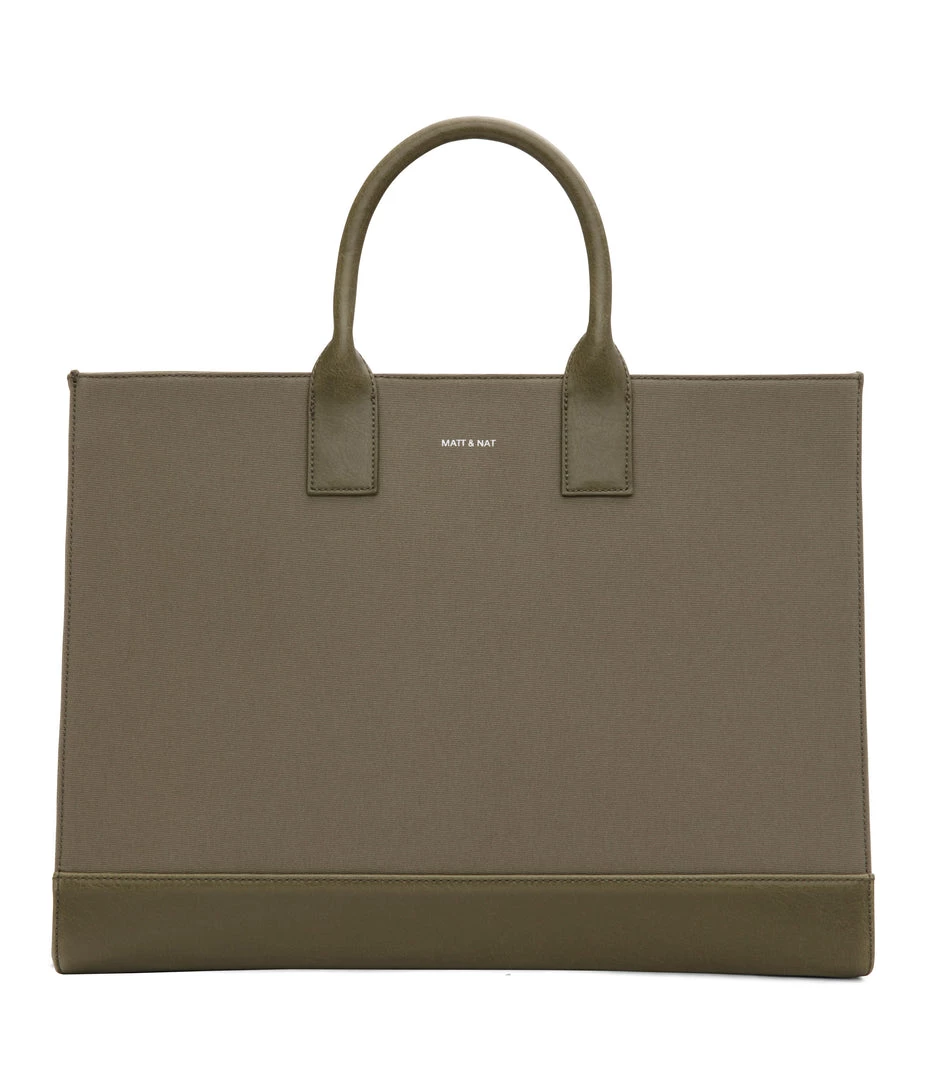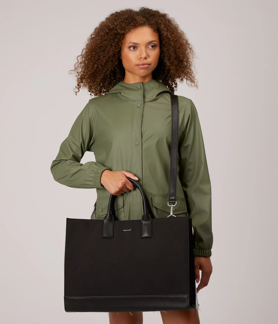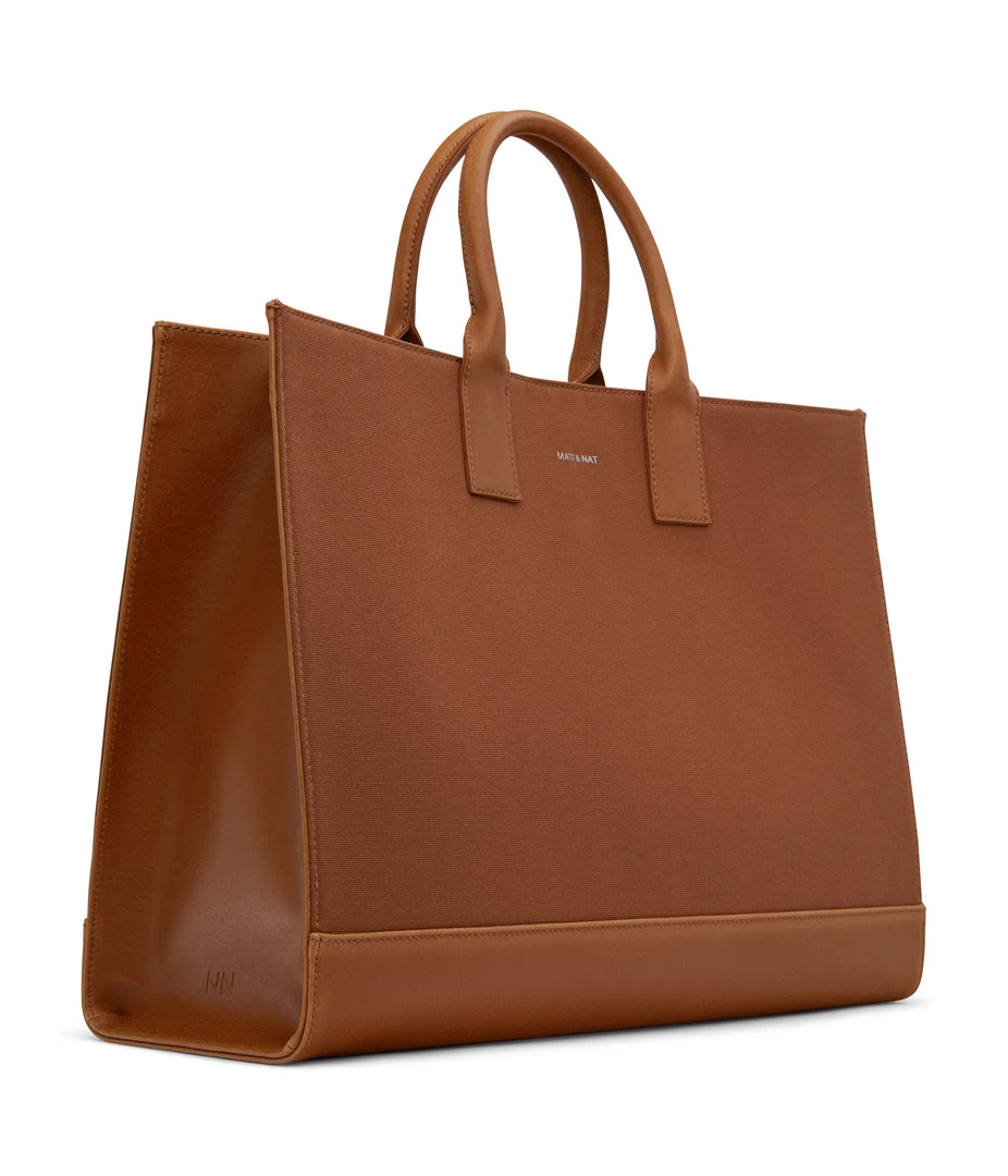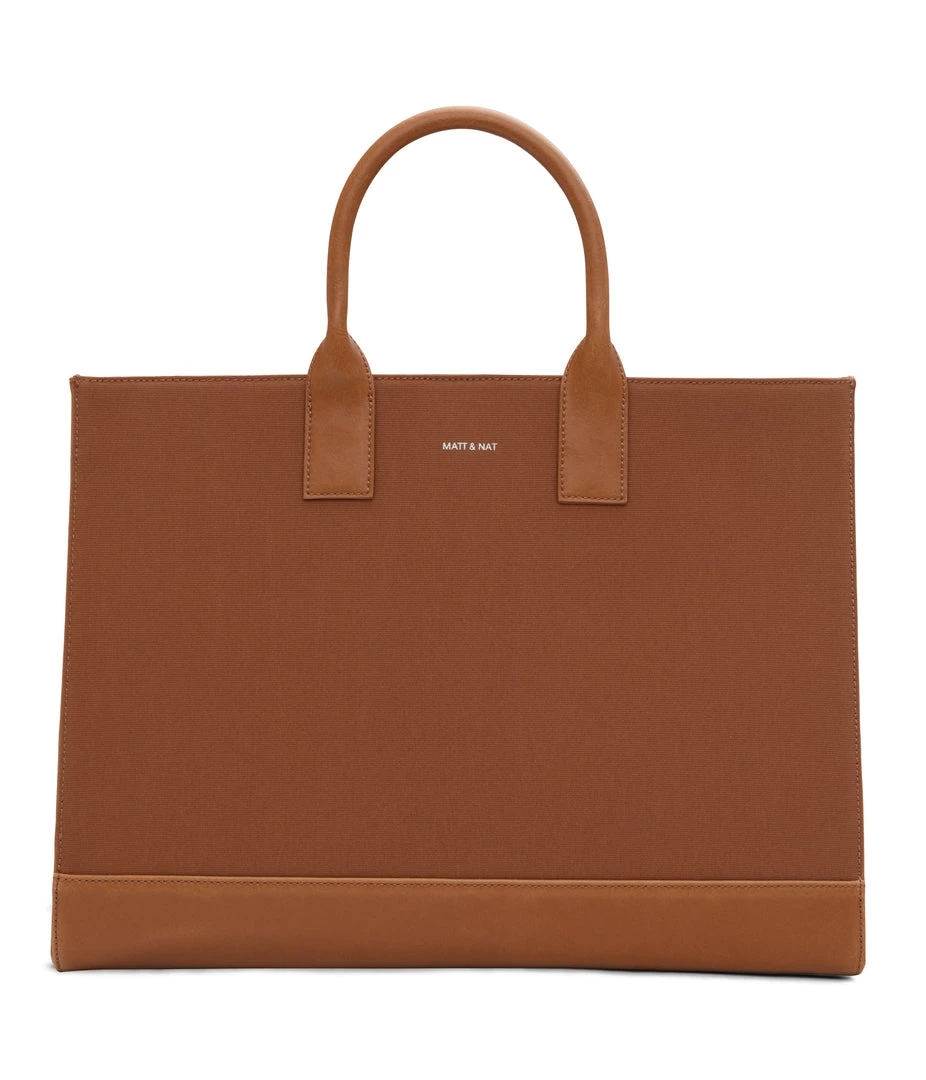 Canvas tote with mag snap center closure. Vintage-trim handles, sides, and bottom gusset. Comes with a removable and adjustable crossbody strap.