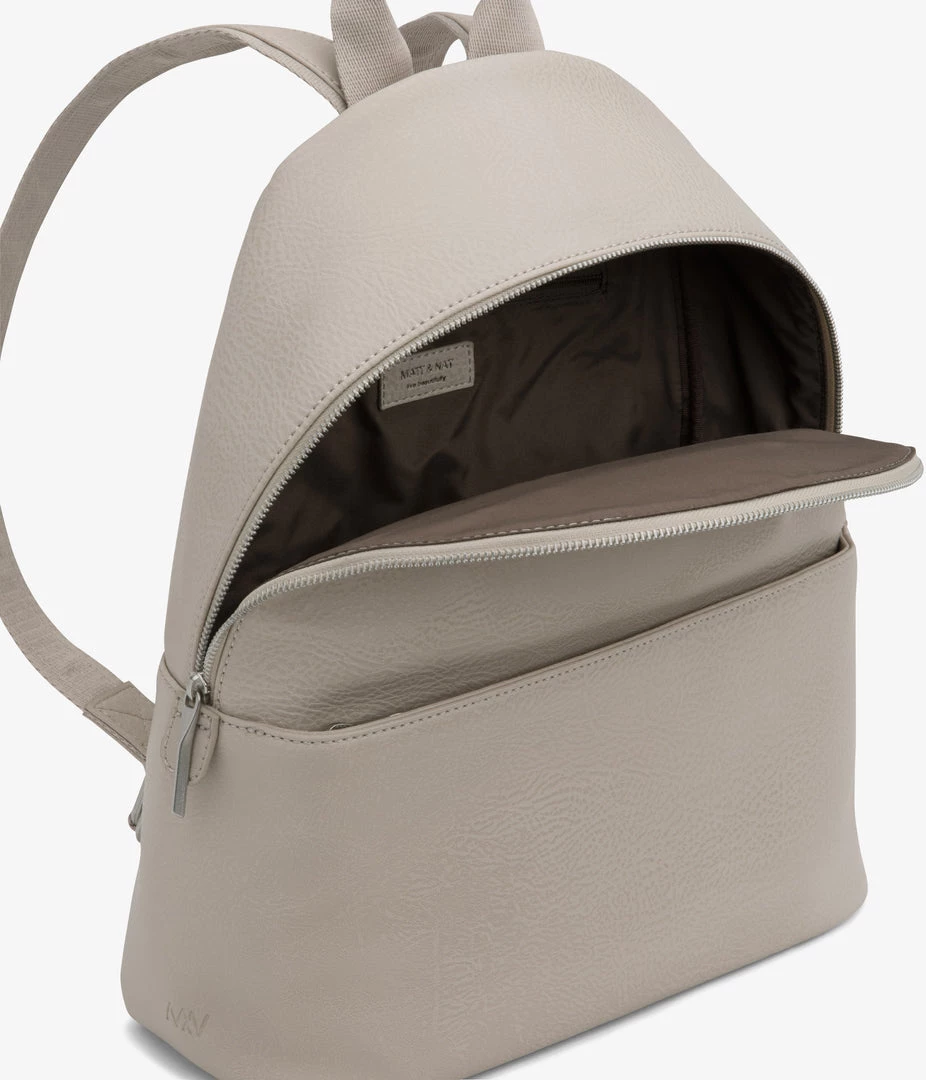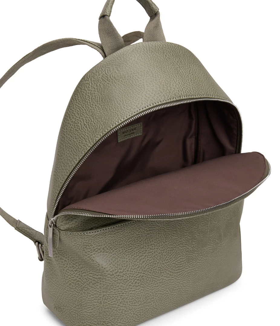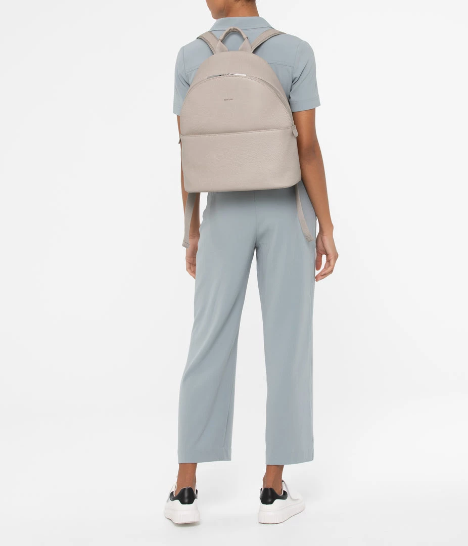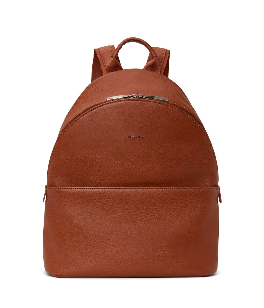 Backpack with top zipper closure and front zipper pocket. Can fit a 13” laptop.