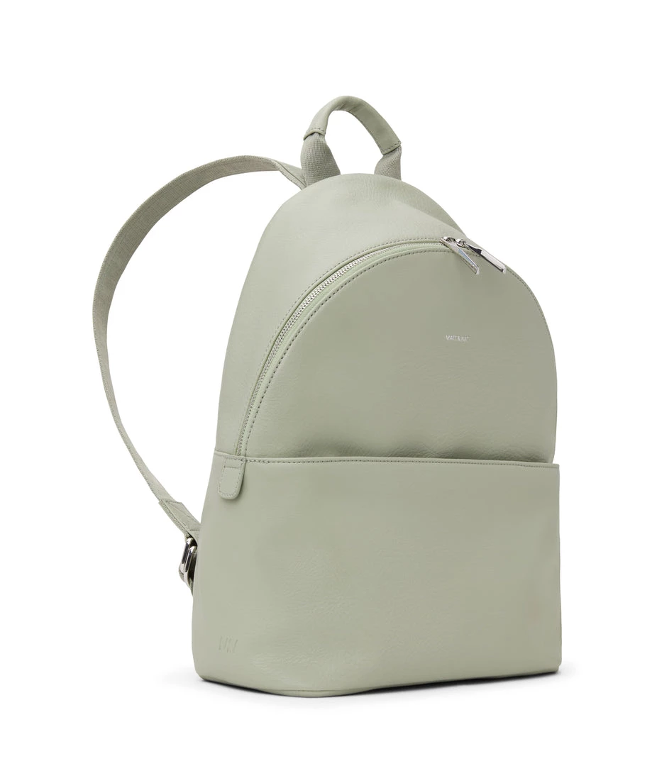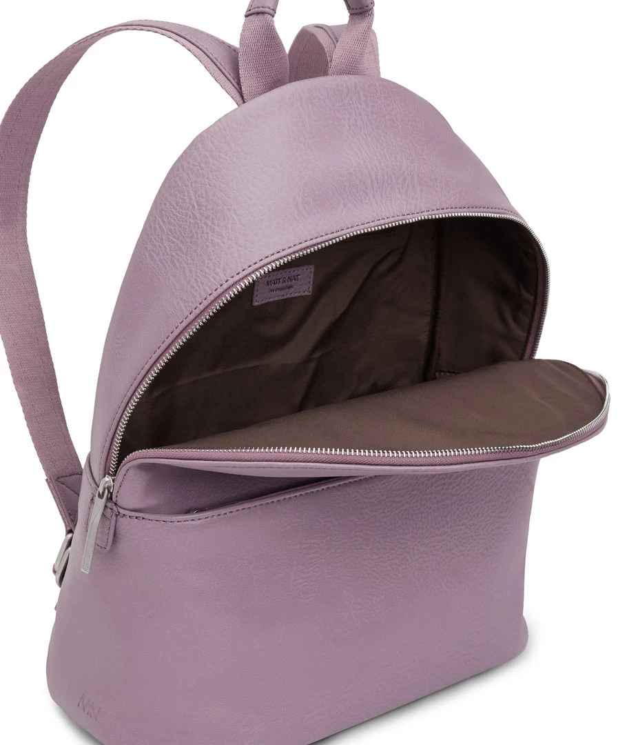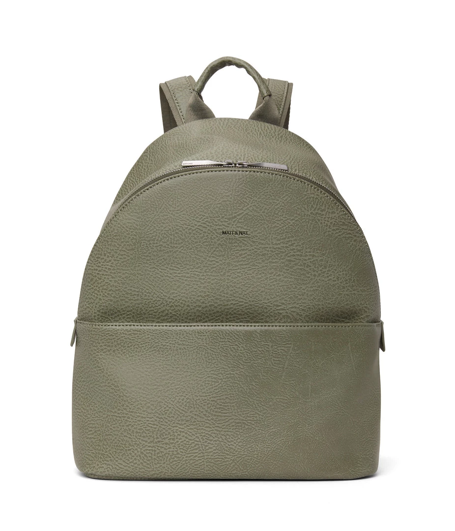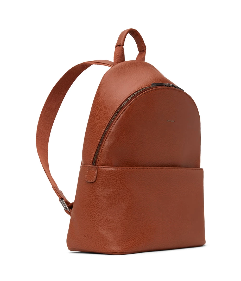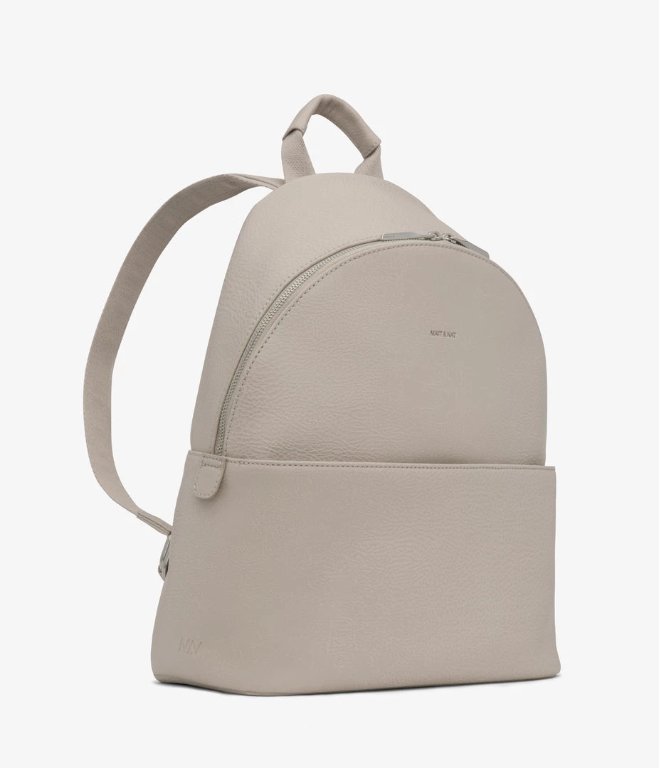 Backpack with top zipper closure and front zipper pocket. Can fit a 13” laptop.