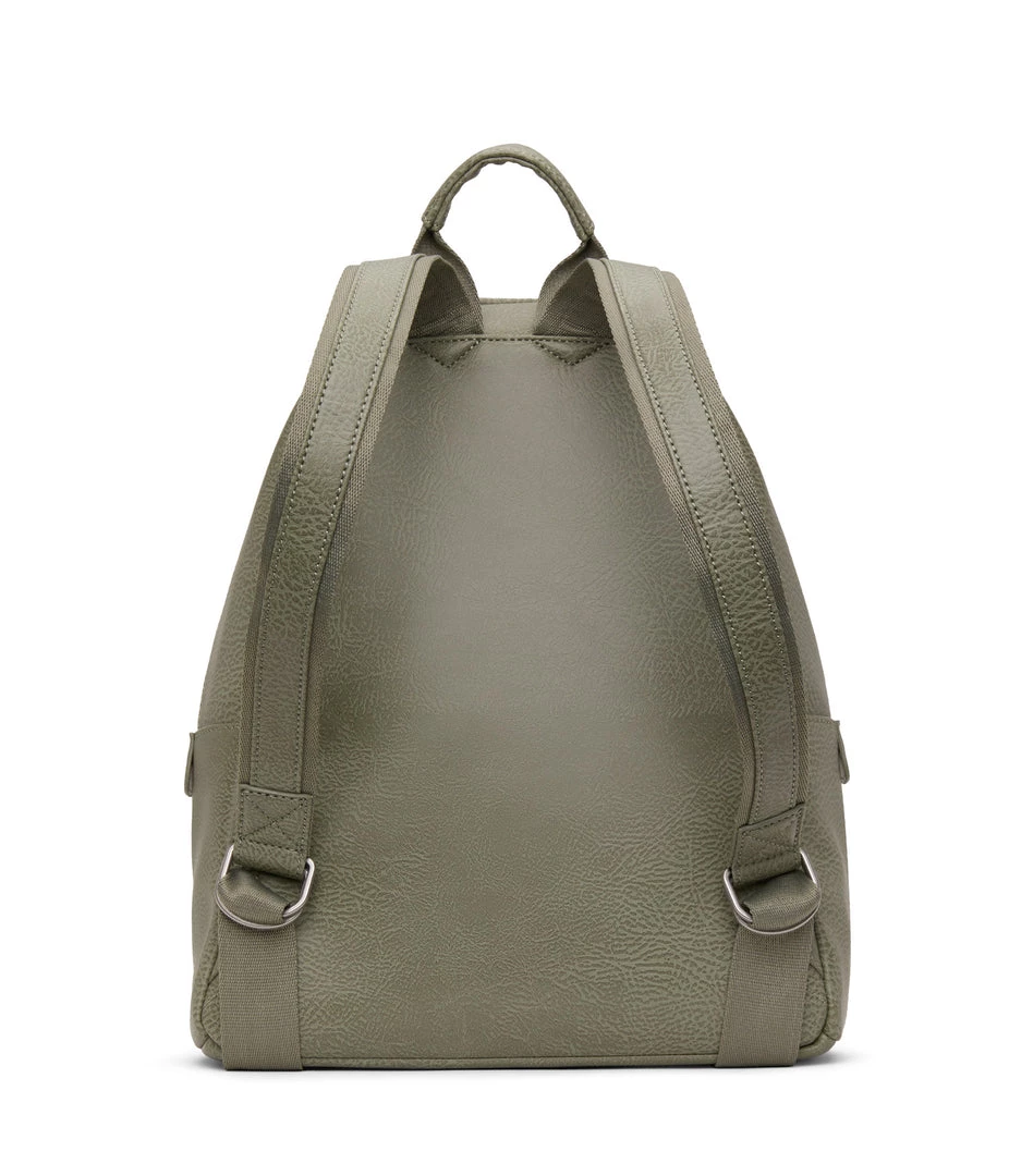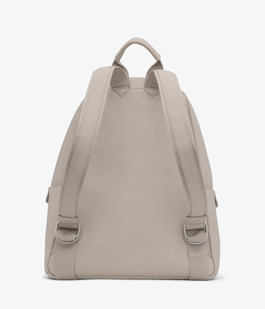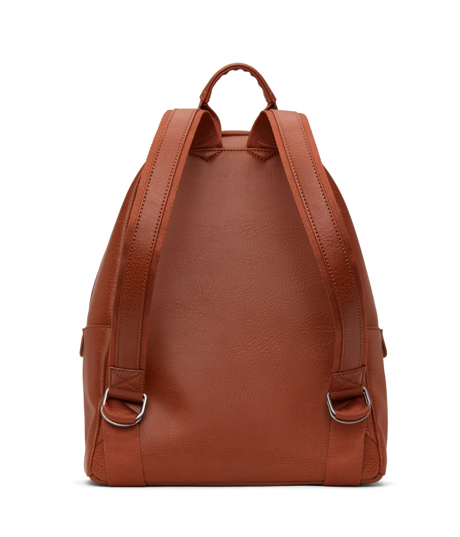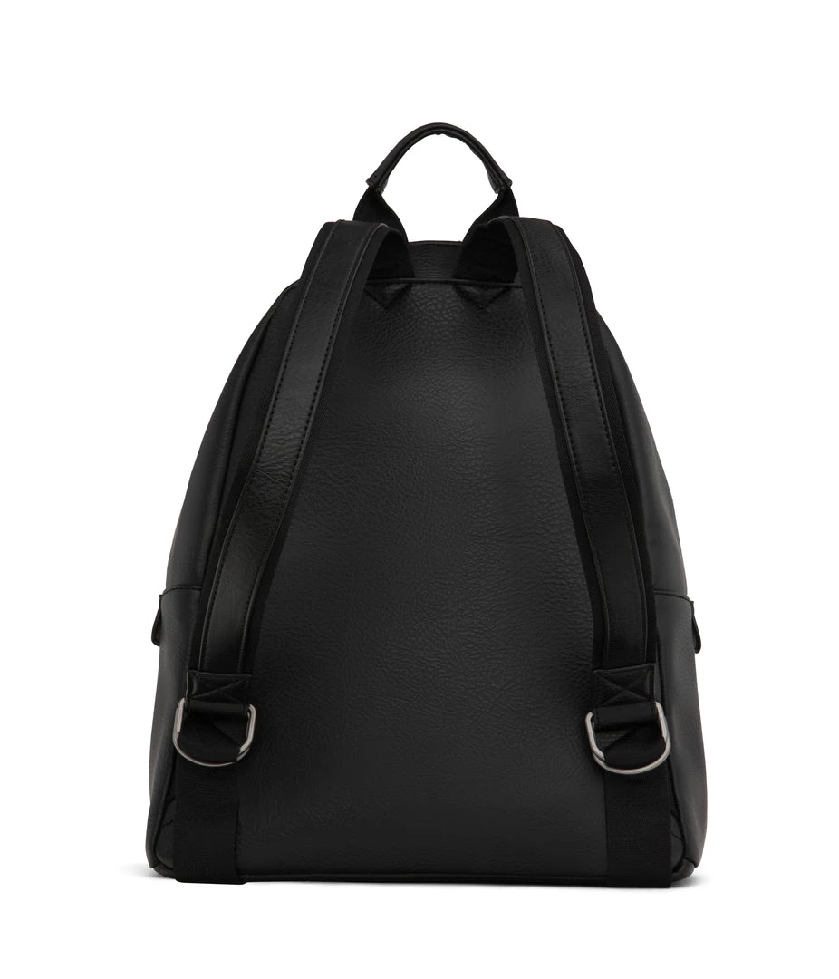 Backpack with top zipper closure and front zipper pocket. Can fit a 13” laptop.