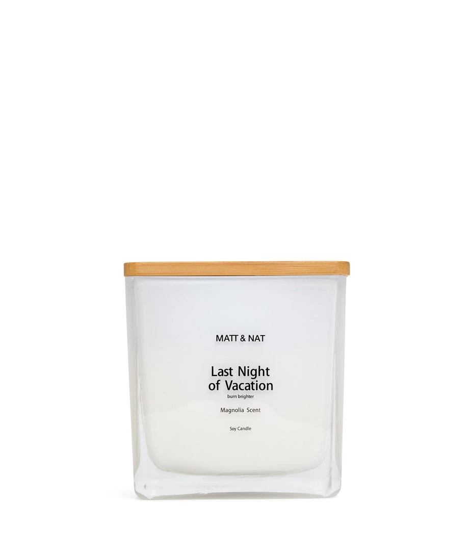 Outside it’s dusk but there’s an energy to the air. You tilt your head up and catch a waft of magnolias in the breeze. The night is young, there are memories to make. Comes in a frosted glass jar with a removable bamboo logo embossed lid candle cover and is packaged into a beautifully crafted MATT & NAT box.