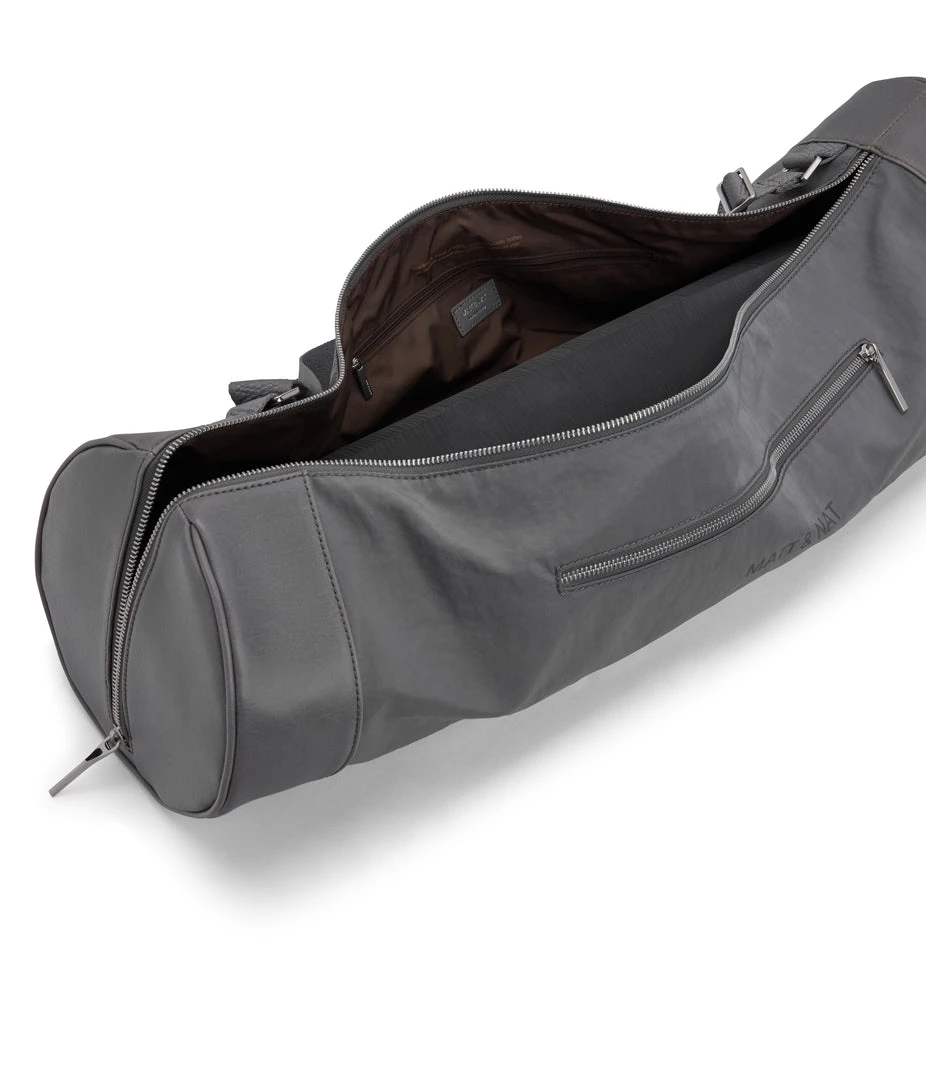 Yoga bag with adjustable shoulder strap. Front zipper pocket to store necessities.