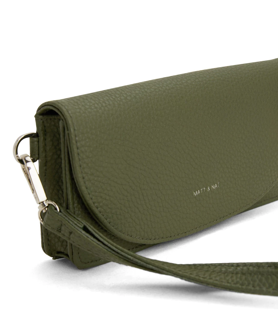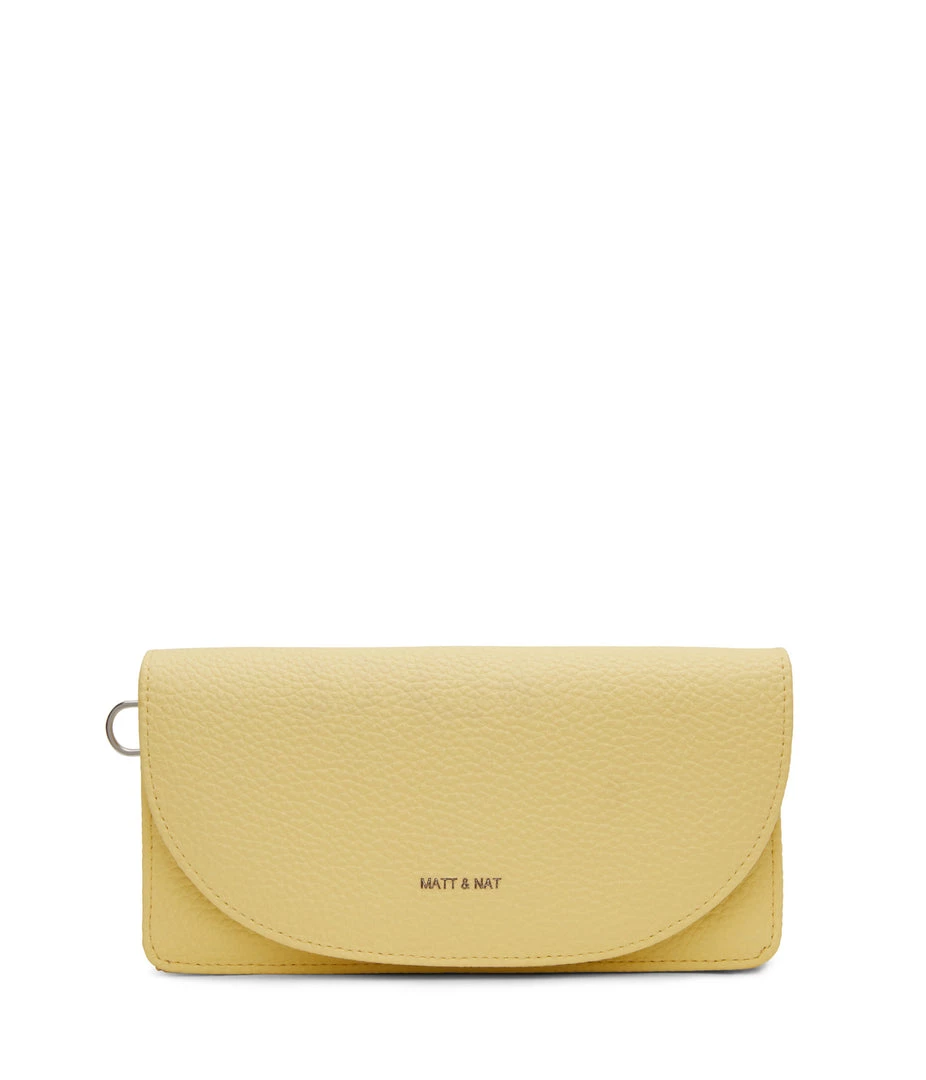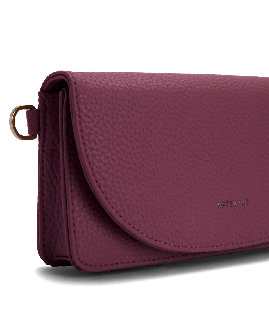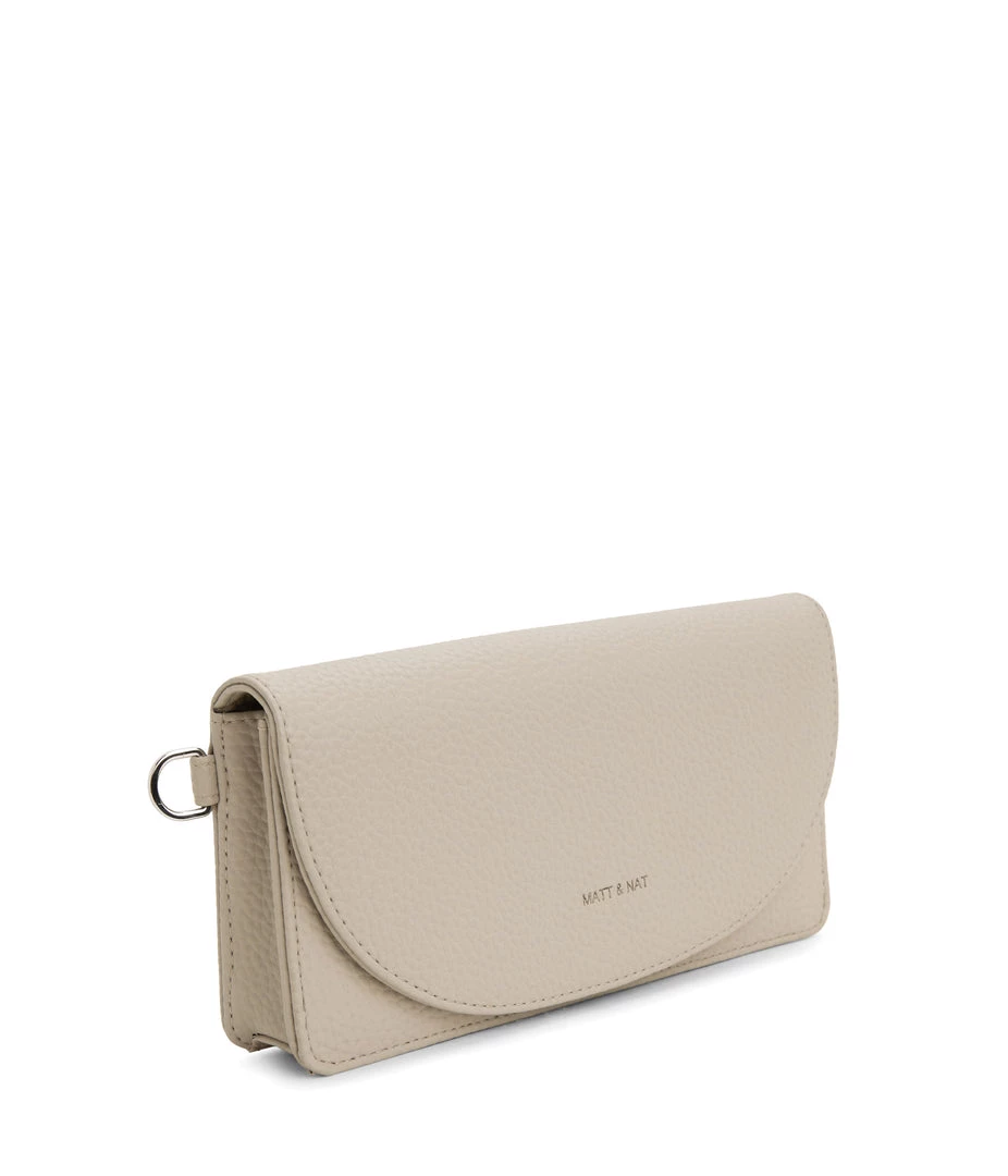 Wallet with a removable wristlet, flap closure, and zippered pocket at the front panel top. Fits an iPhone 11 Pro Max.