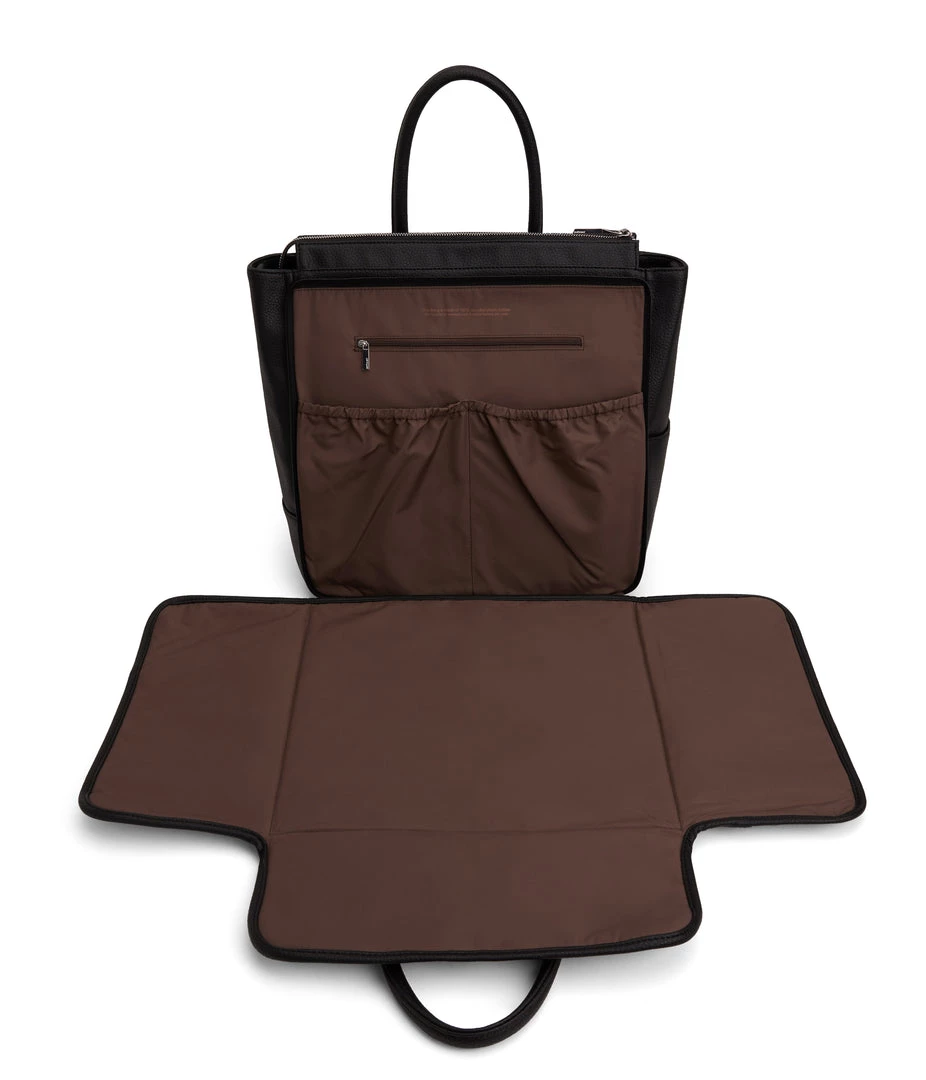 - Interior: Back compartment; changing pad, 2 elasticized pouch pockets for baby bottles and zipper pocket.