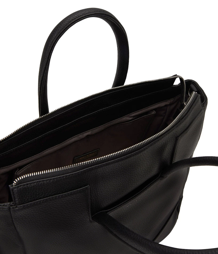 - Main compartment: 4 elasticized pouch pockets, 1 zipper pocket, 1 slit pocket, and 13” padded laptop sleeve.