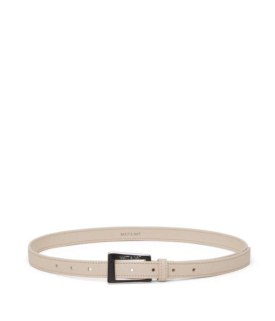 Regular waist belt with pin-stud asymmetric buckle fastening.