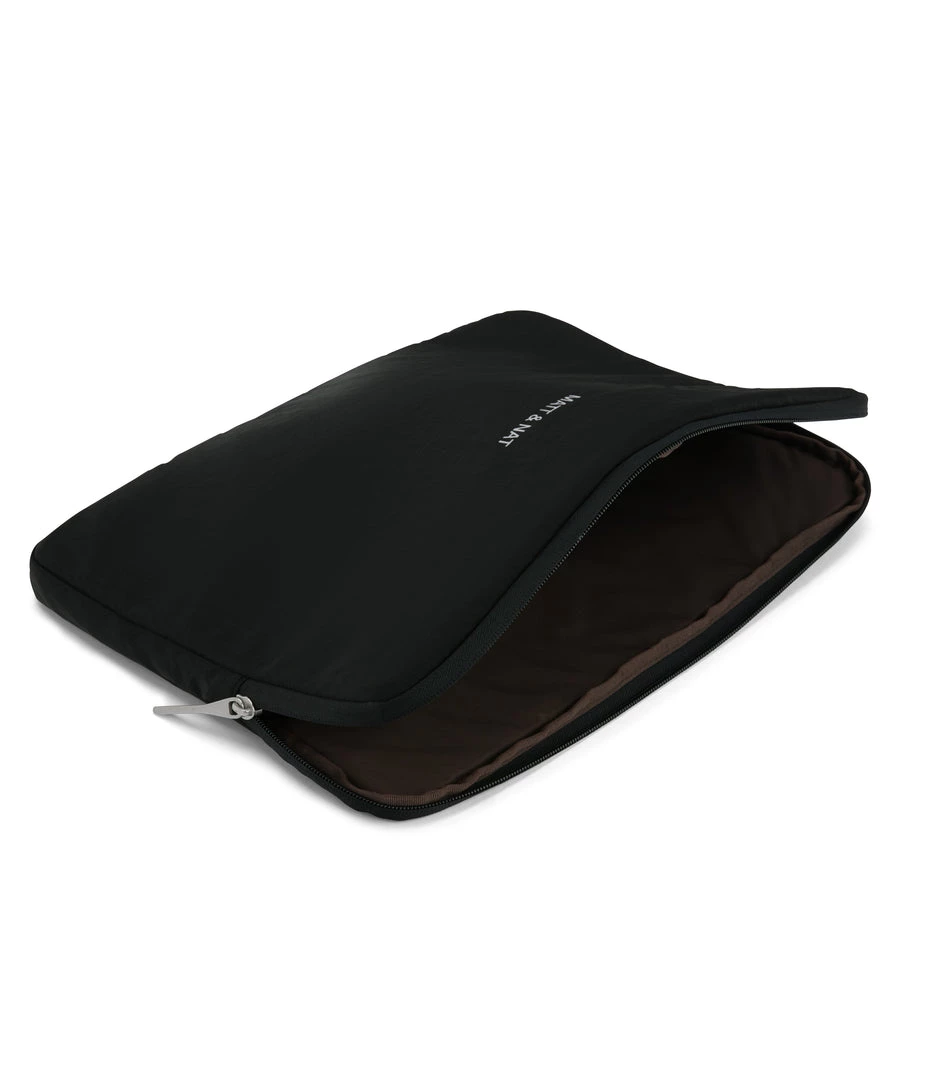 15″ Laptop sleeve. Webbing strap at back to attach on to luggage handle.
