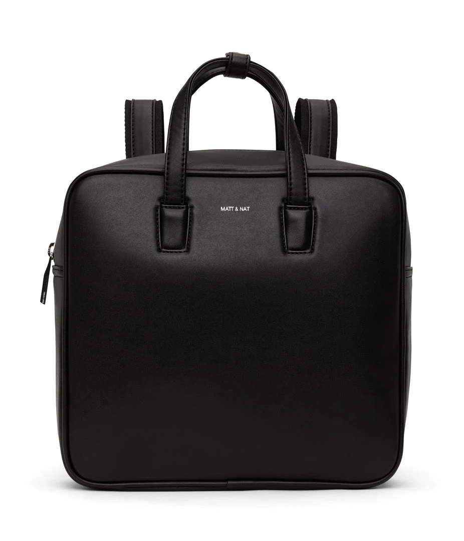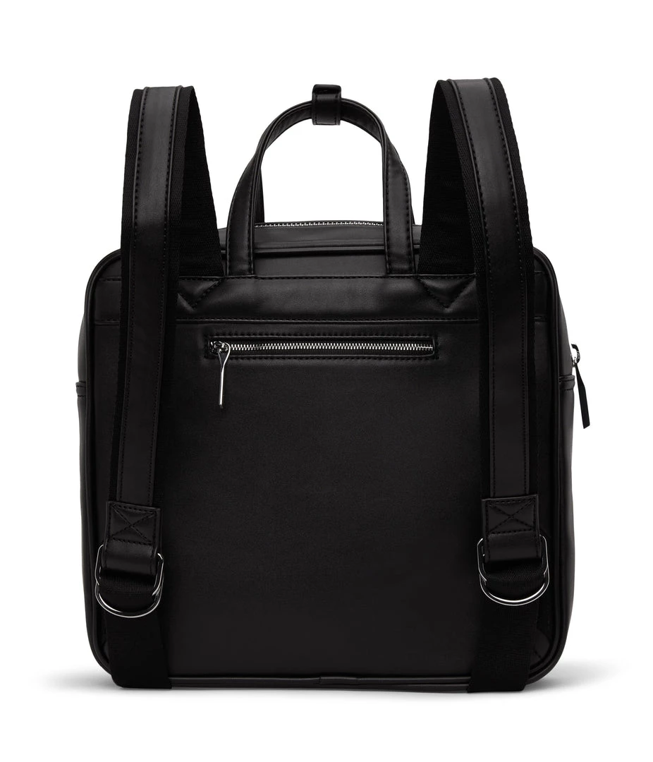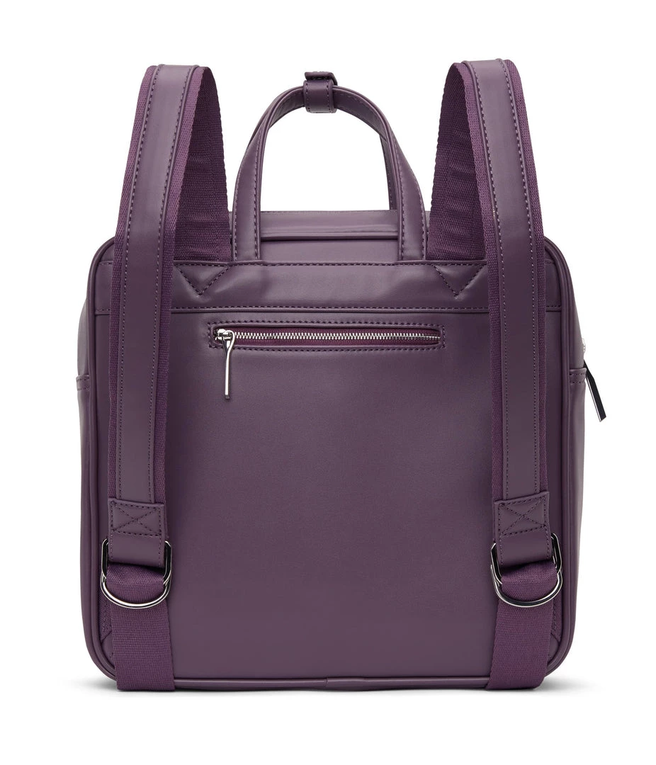 Backpack with top zipper main closure, double handles to hand carry, adjustable back straps, and zipper pocket on exterior back.